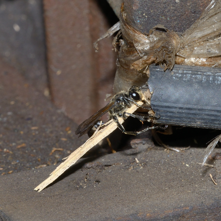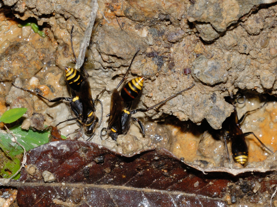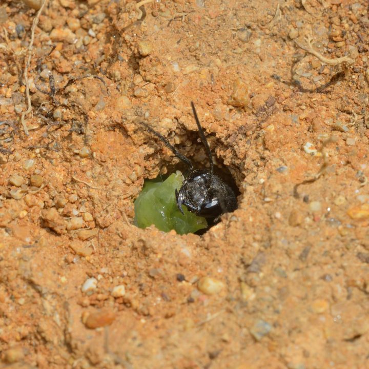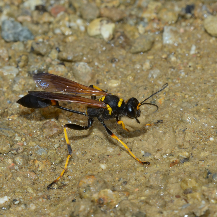 ドロバチの様に乾いた土は採取しない。
