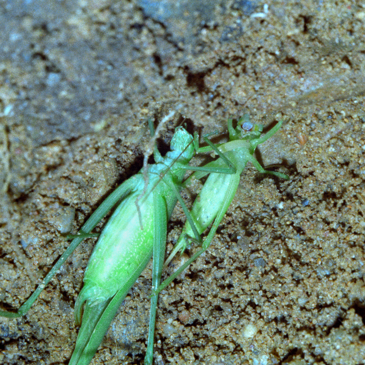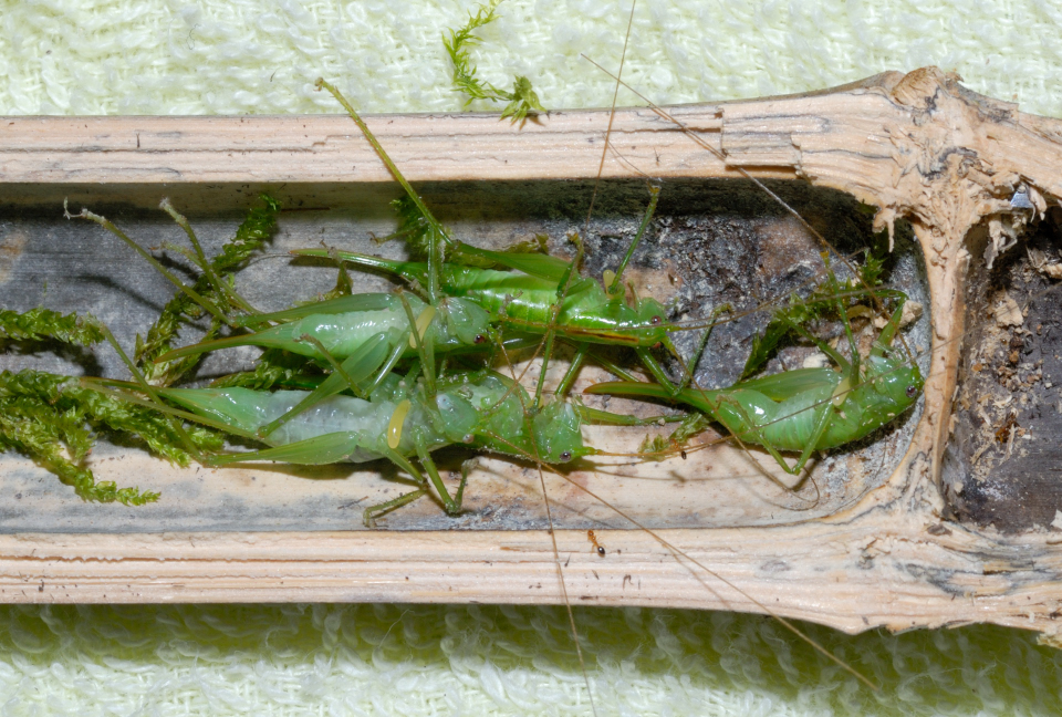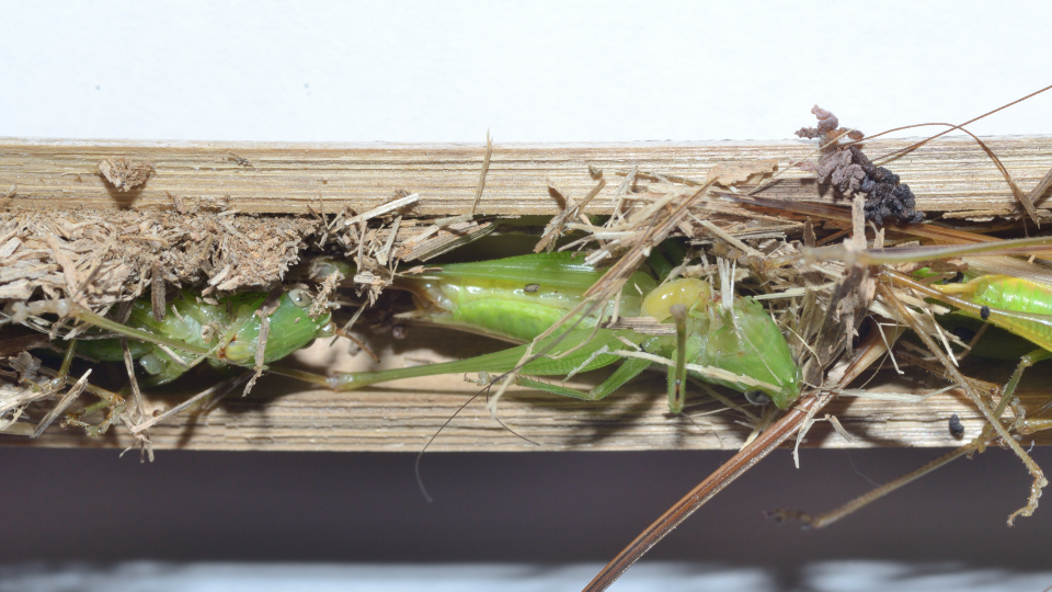 狩っているのは、サツマノミダマシで造網性だが、待機型の蜘蛛も狩る。