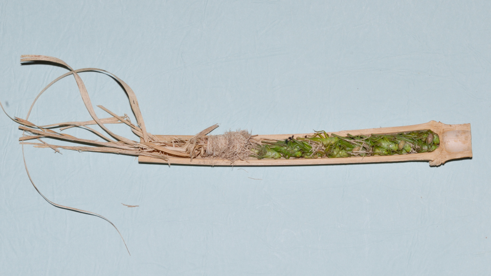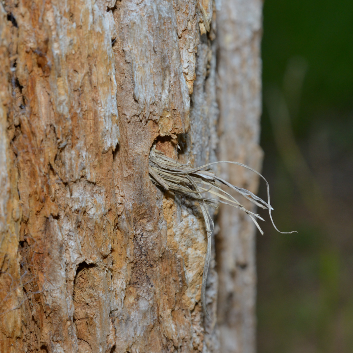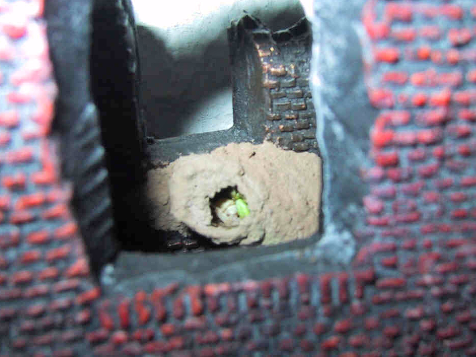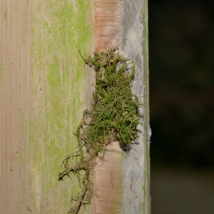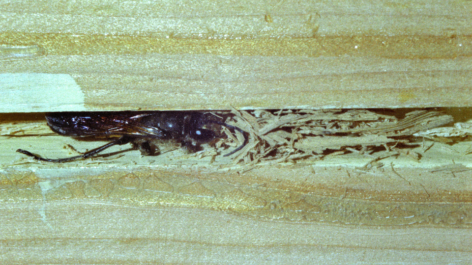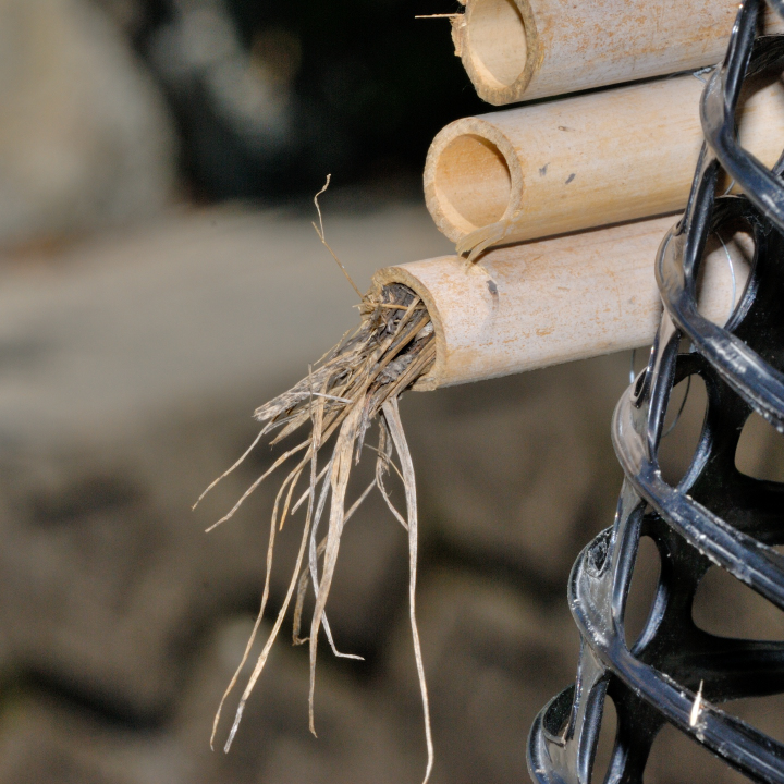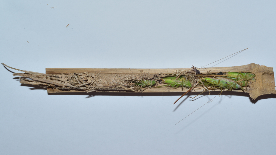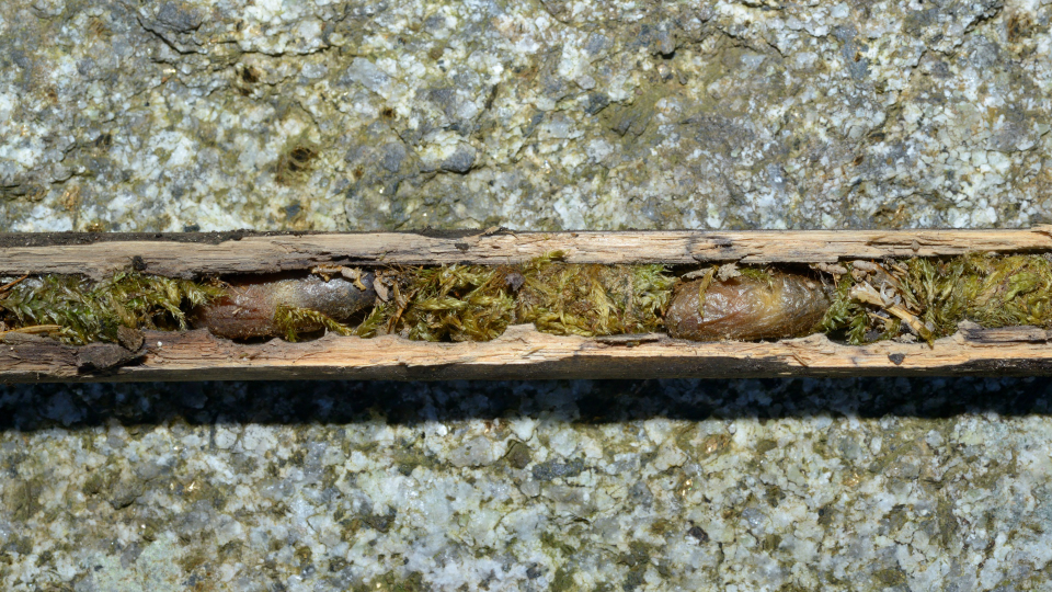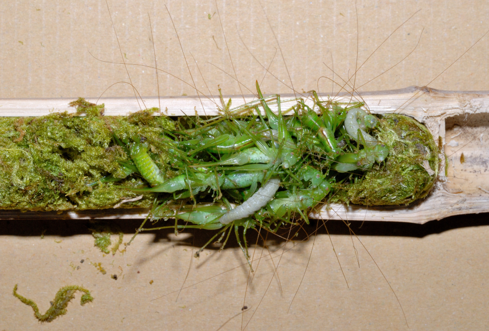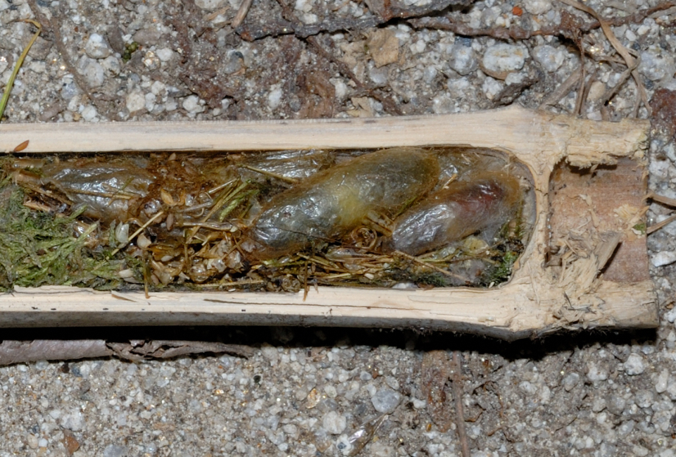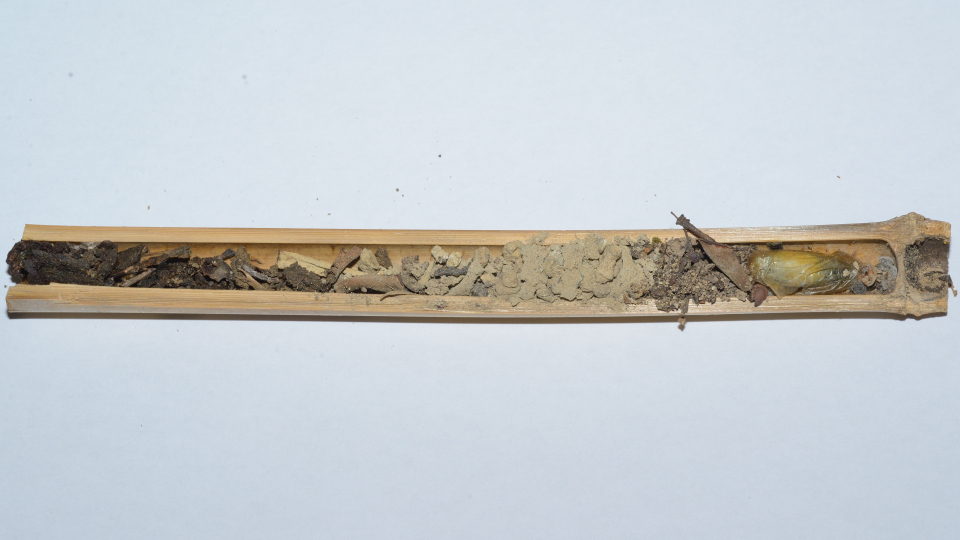 8月中旬に完成した巣だが、7月上旬にすでに羽化後の脱出孔がある。