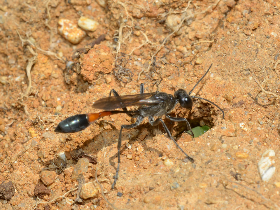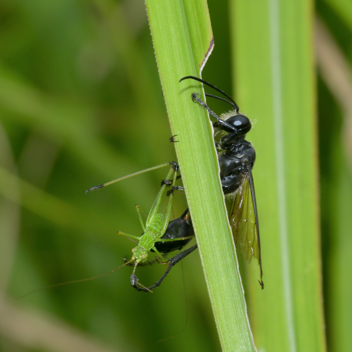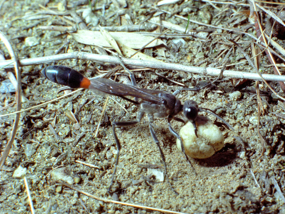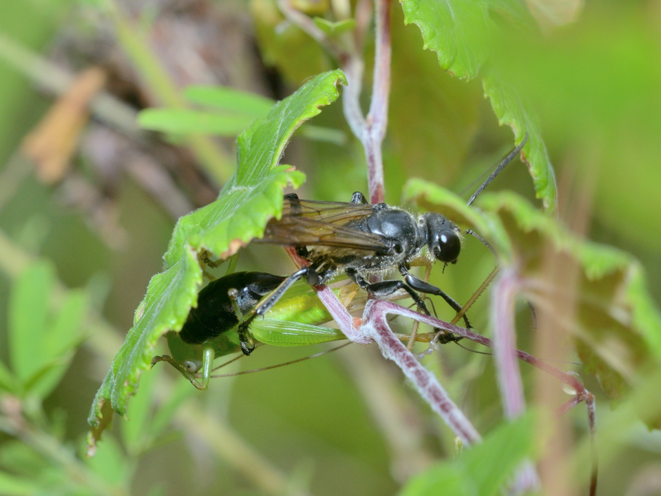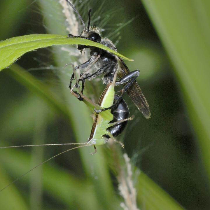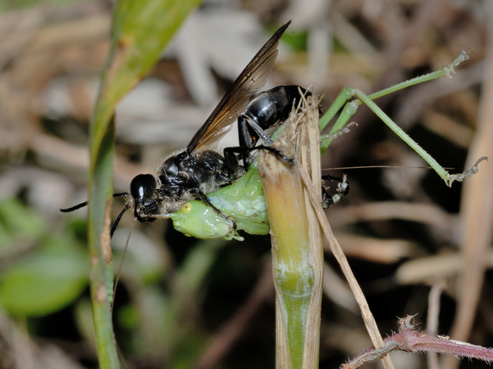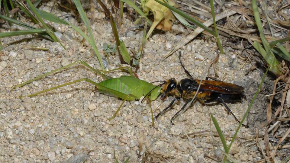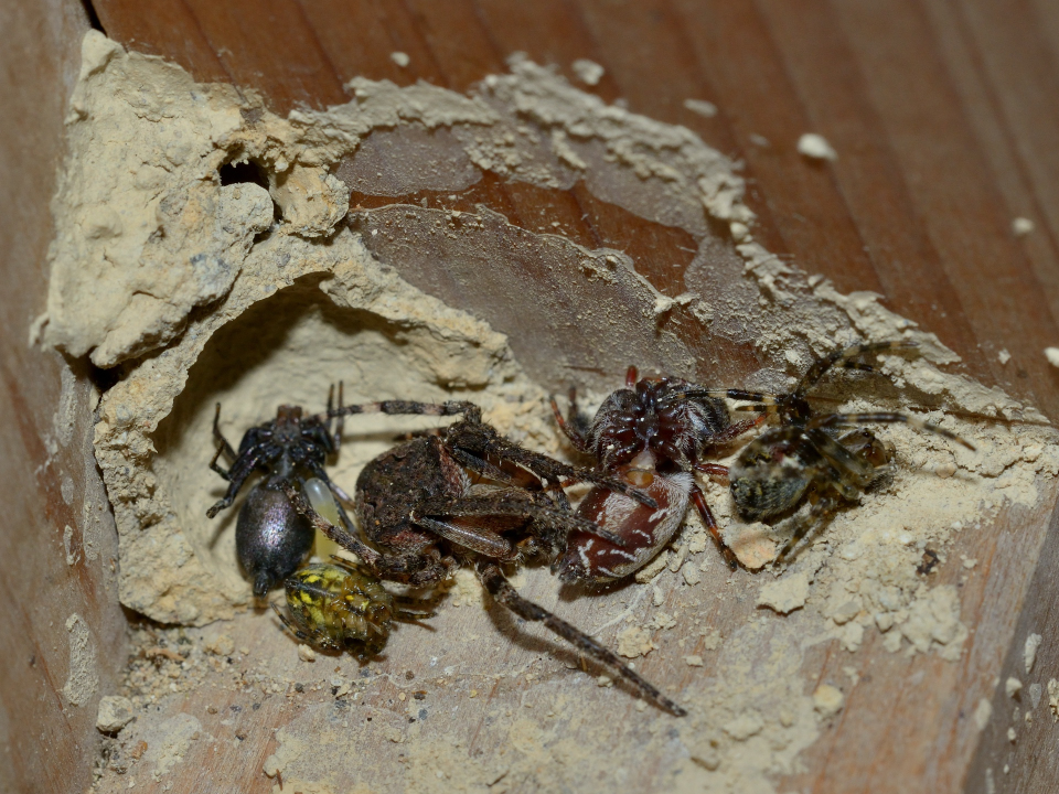 他の蜘蛛を狩る狩バチは、特定のグループの蜘蛛を狩る事が多いが、この蜂は多様な蜘蛛を狩る。