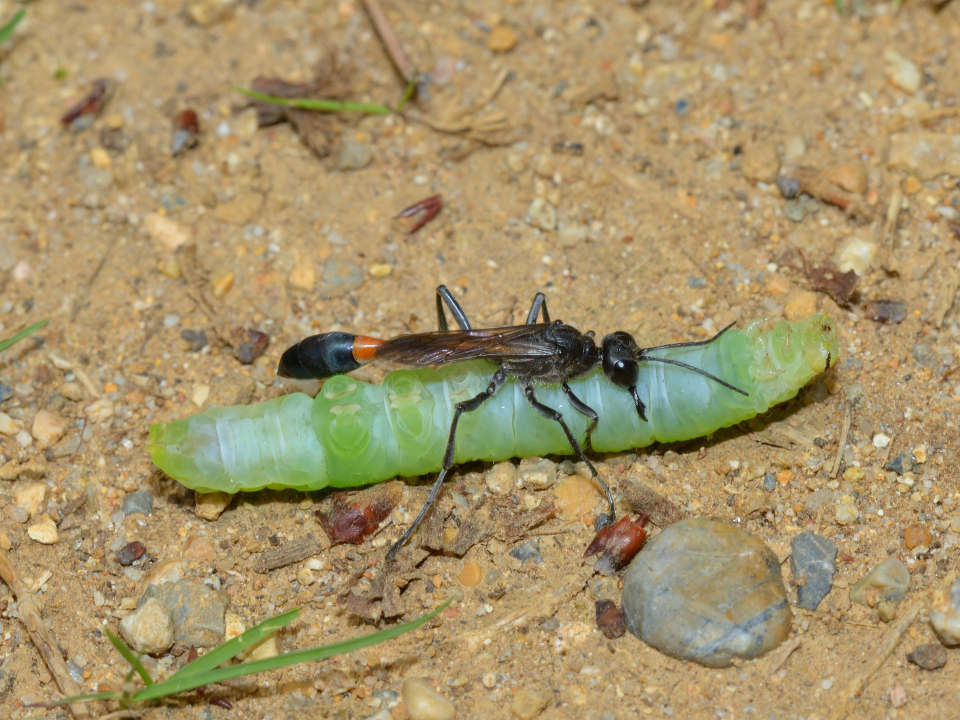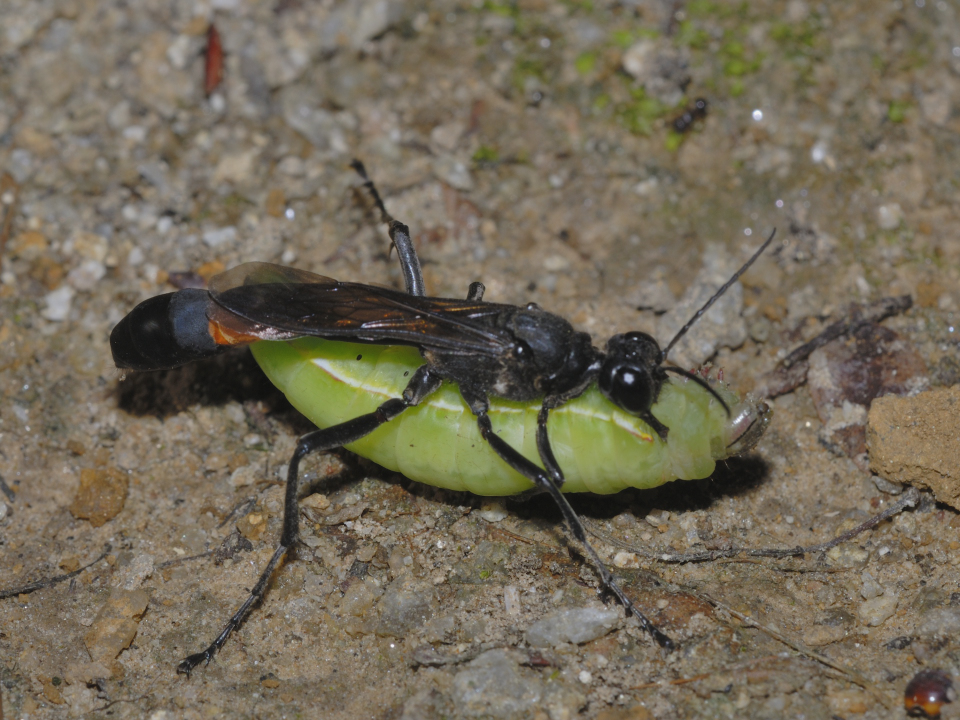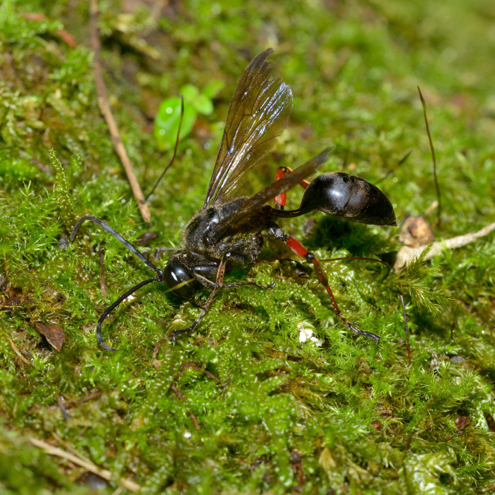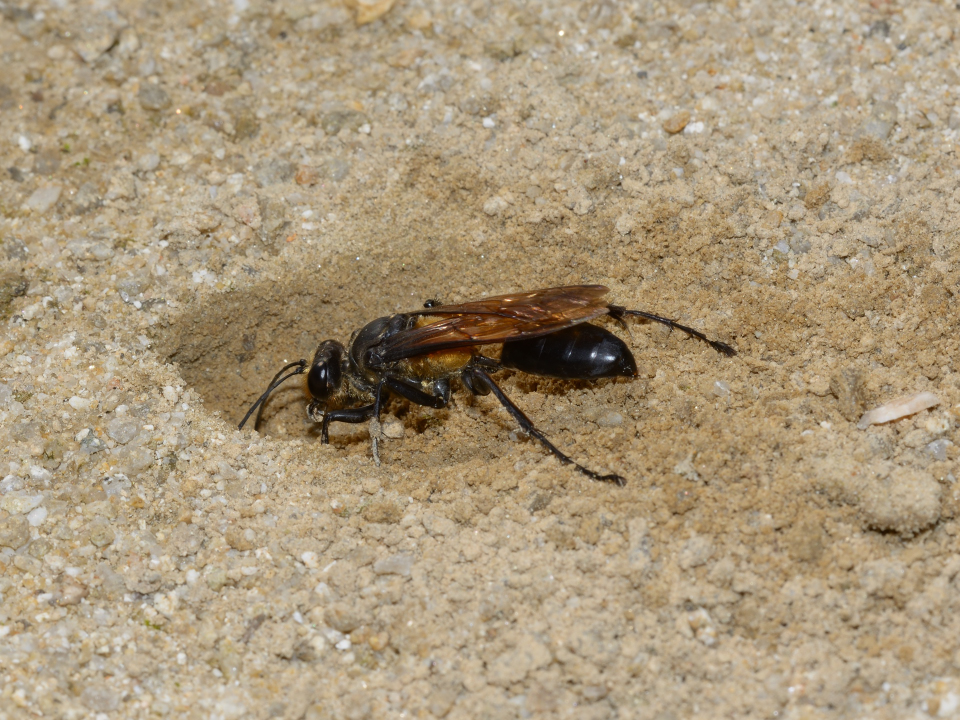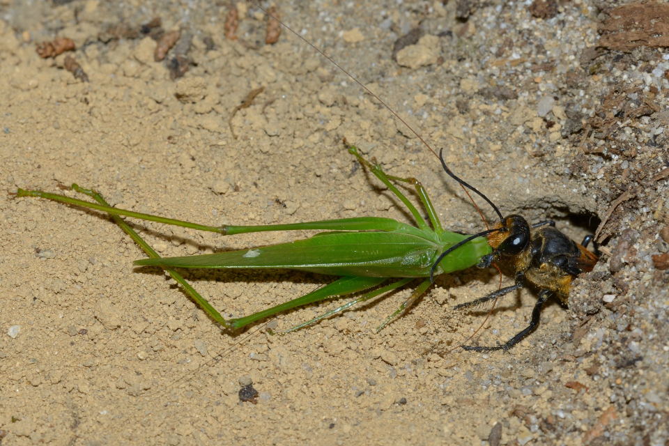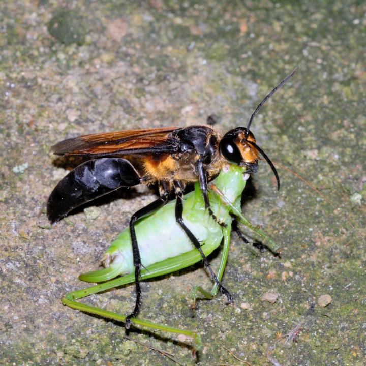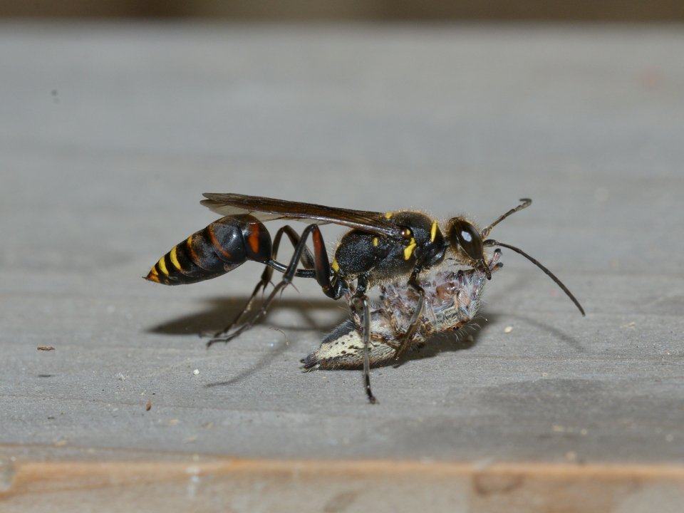 他の蜘蛛を狩る狩バチは、特定のグループの蜘蛛を狩る事が多いが、この蜂は多様な蜘蛛を狩る。