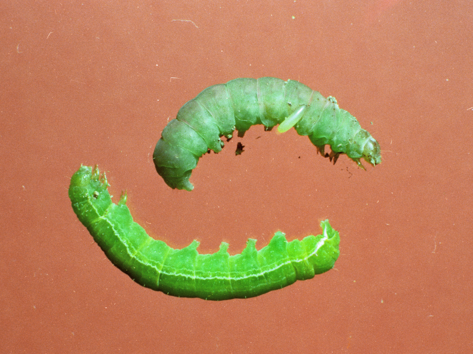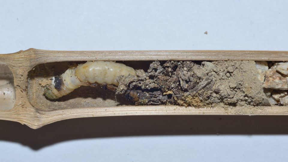 一番上には成長した幼虫が見える。
