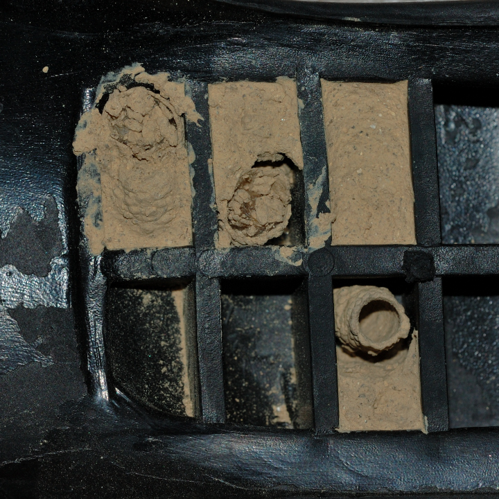 (写真32)アメリカジガバチの古巣を利用した、エントツドロバチの巣。