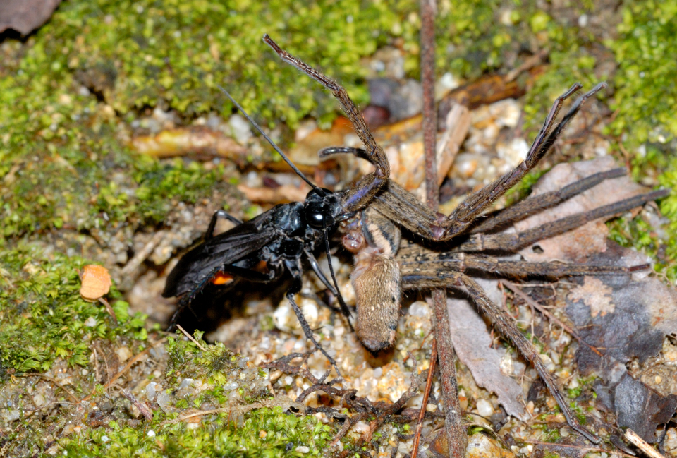 チュウヒメクモバチAuplopus obtususという、属内ではやや大型のクモバチがいる。