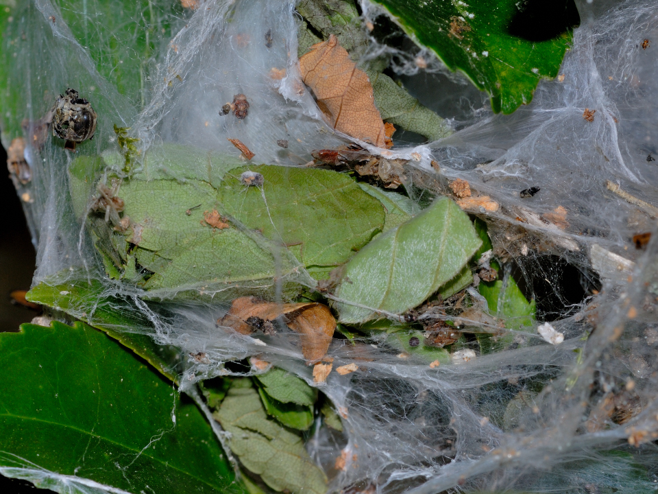 (写真25)蜘蛛の巣の住居部分に作られた、ツルガハキリバチの巣。