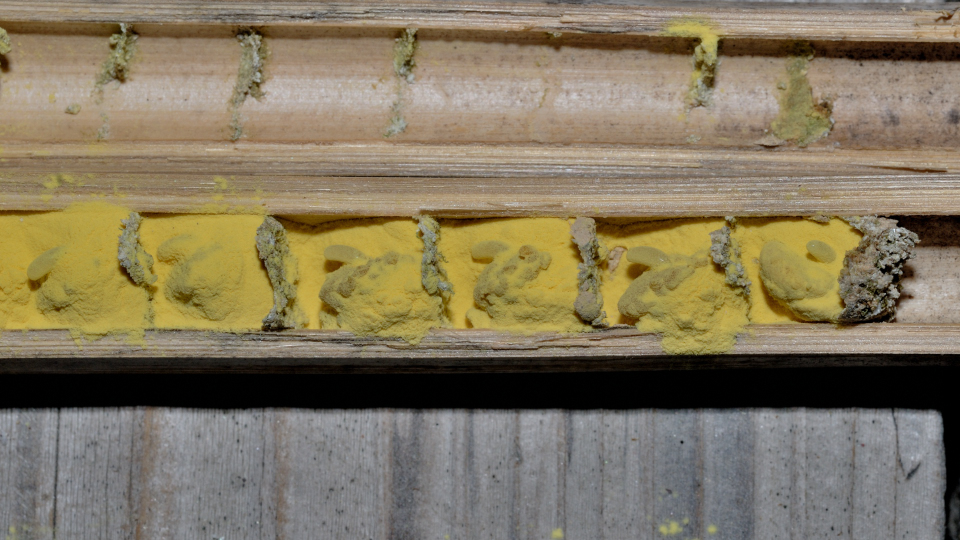 営巣後に割って中を調べることができるので、竹は調査する上で非常に都合がいい。