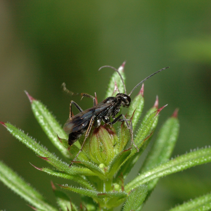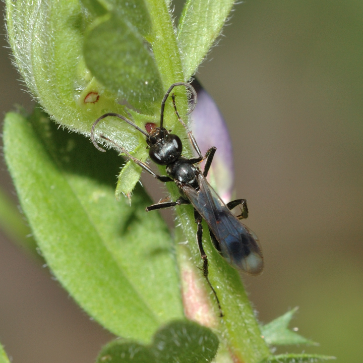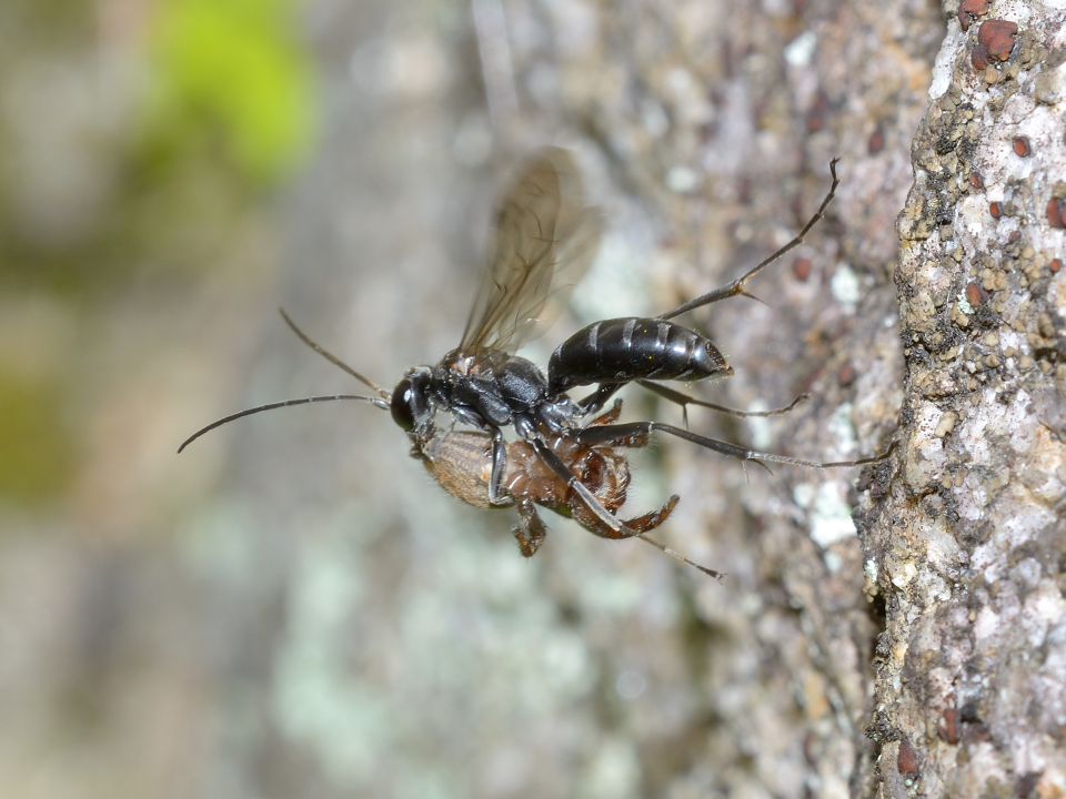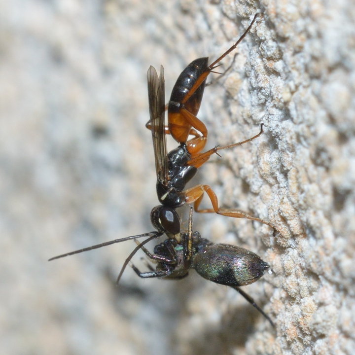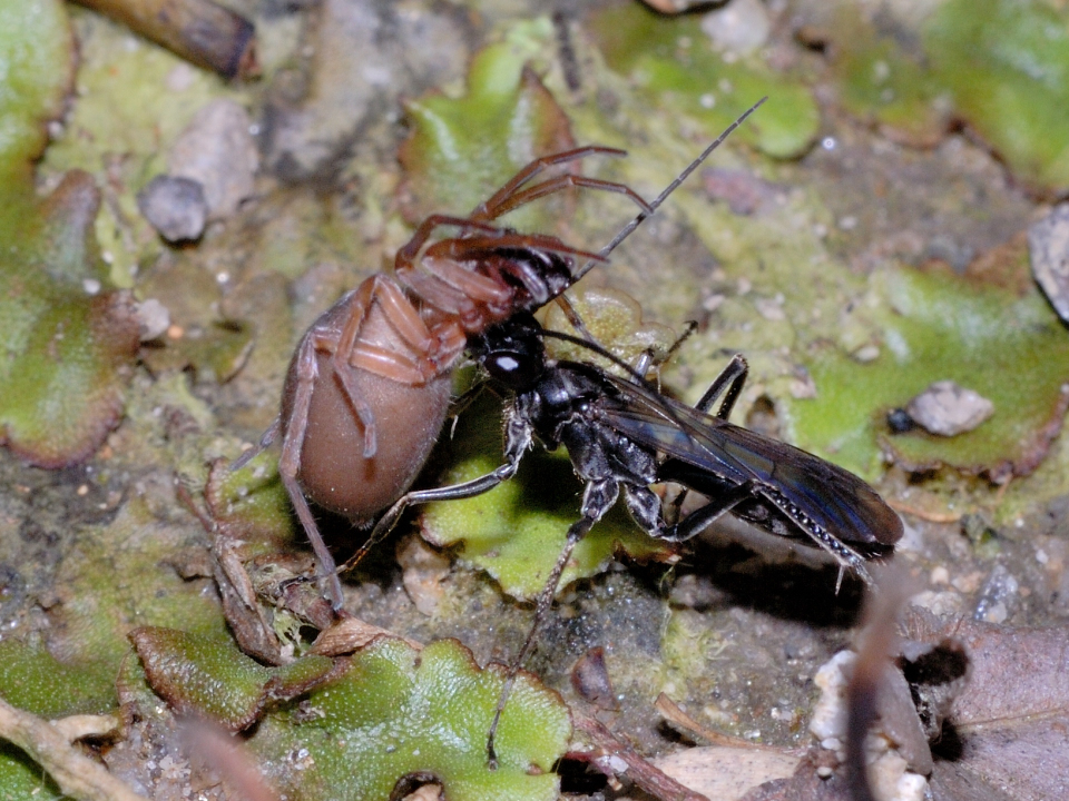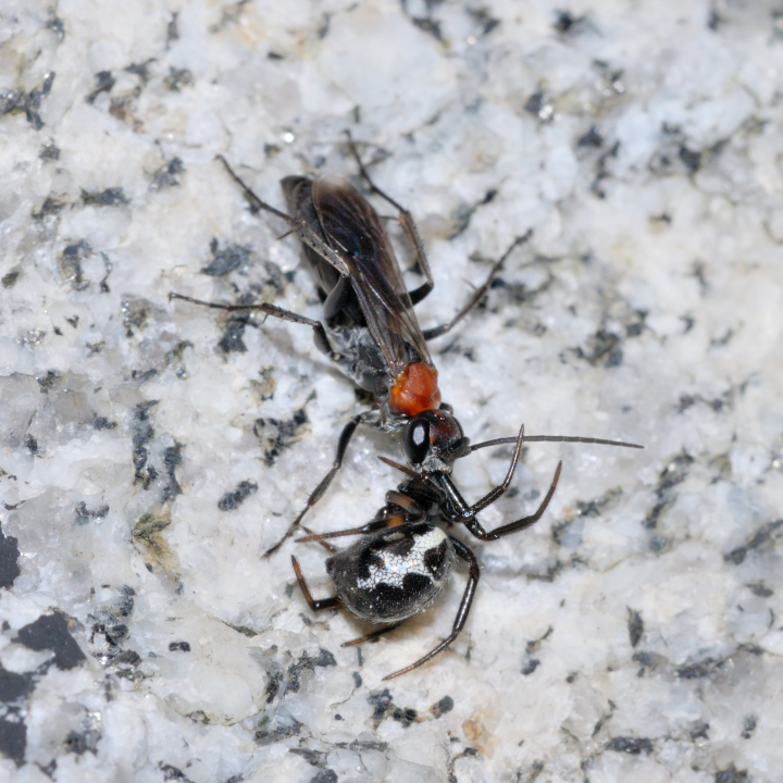 小型のクモバチで、ハエトリグモ科の蜘蛛を狩るが、ヨーロッパの記録として時々カニグモ科の蜘蛛を狩るという。