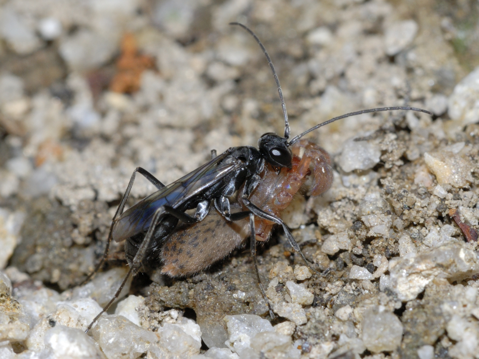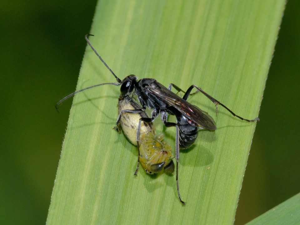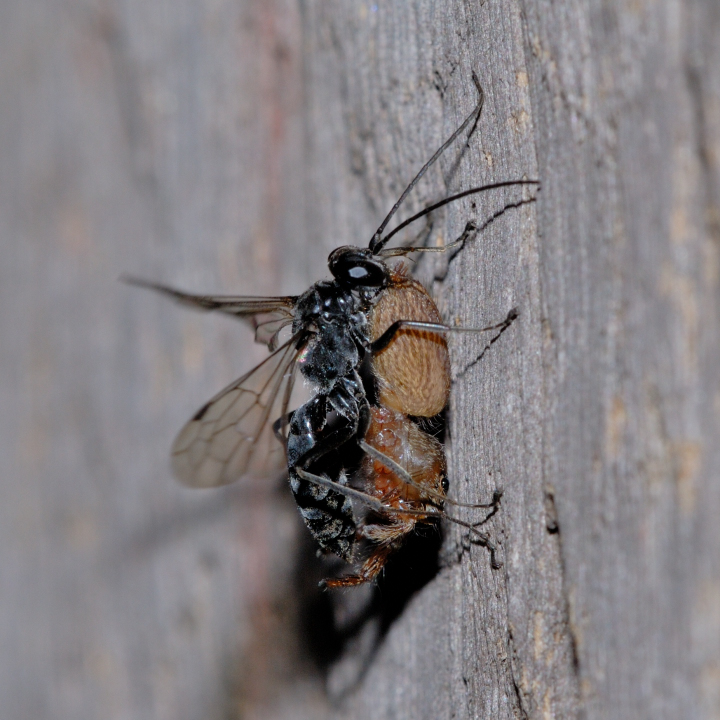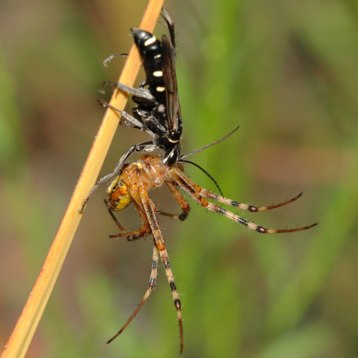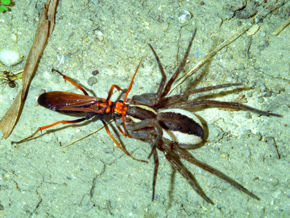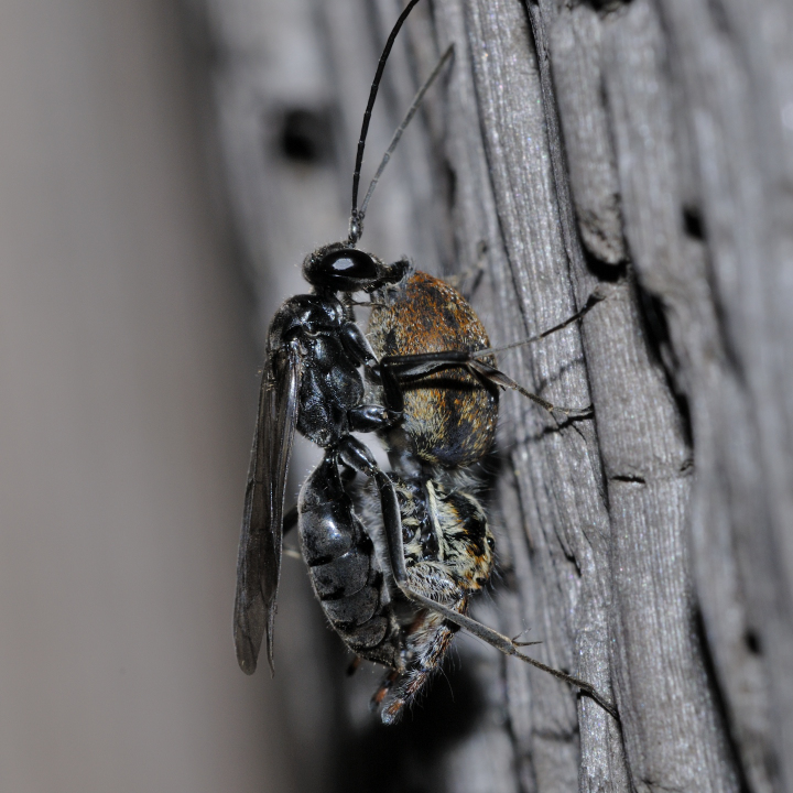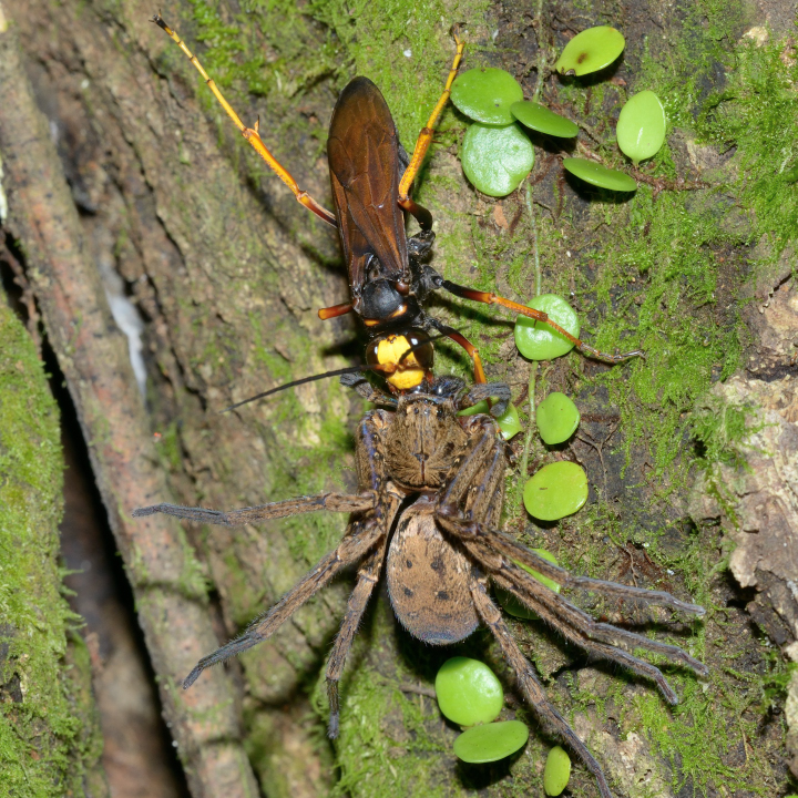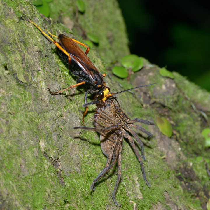 また多くのクモバチがそうである様に、たいていはメスより小型である。