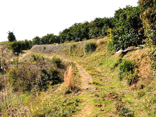 林と境内地との境には低い土手があり、キバナヒメハナバチはそこに幾つもの巣穴を掘った。