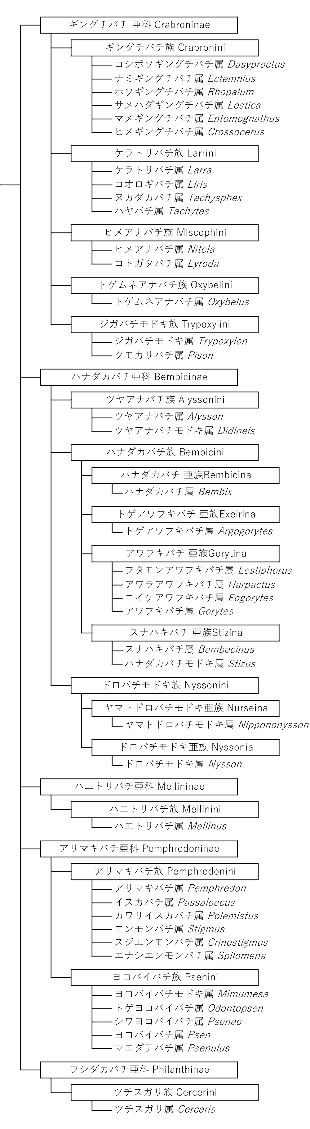 トノサマバッタの幼虫を狩り、巣に搬入する。