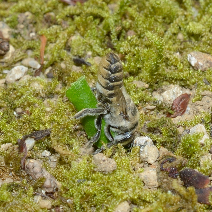 林縁や伐採地などの裸地に営巣し、地中に葉片で育房を作る。