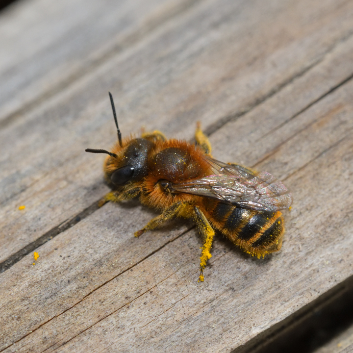 スコパに花粉を集めている。