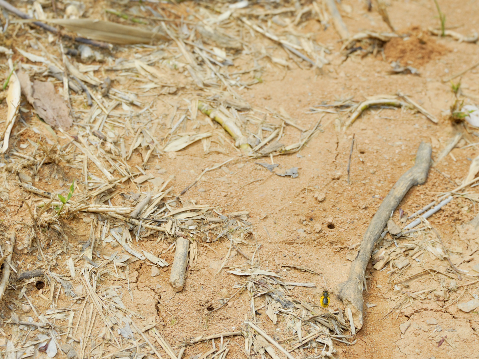 みかん農園の農道にできた営巣地。