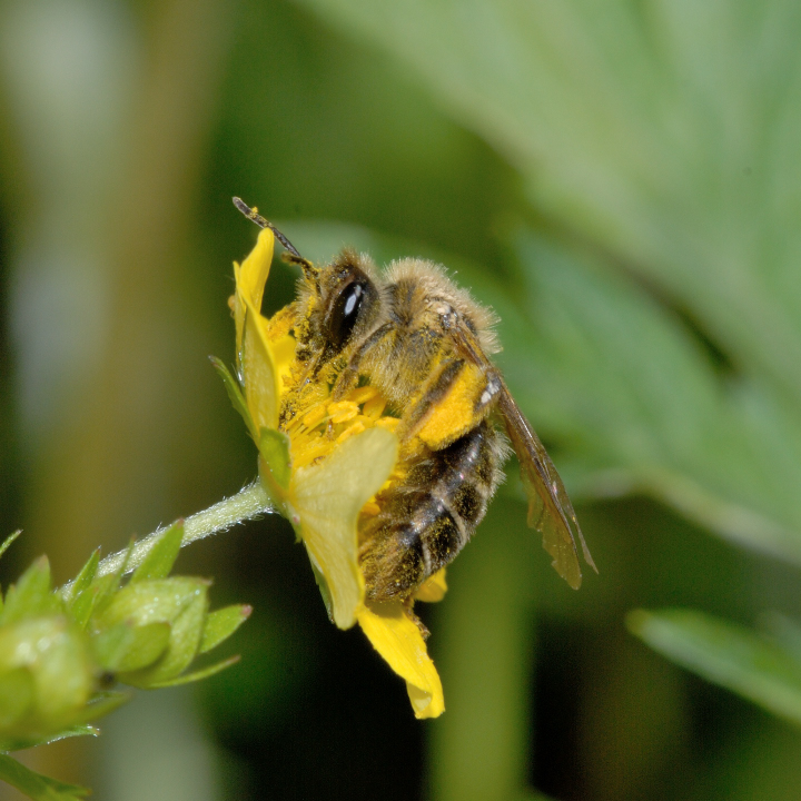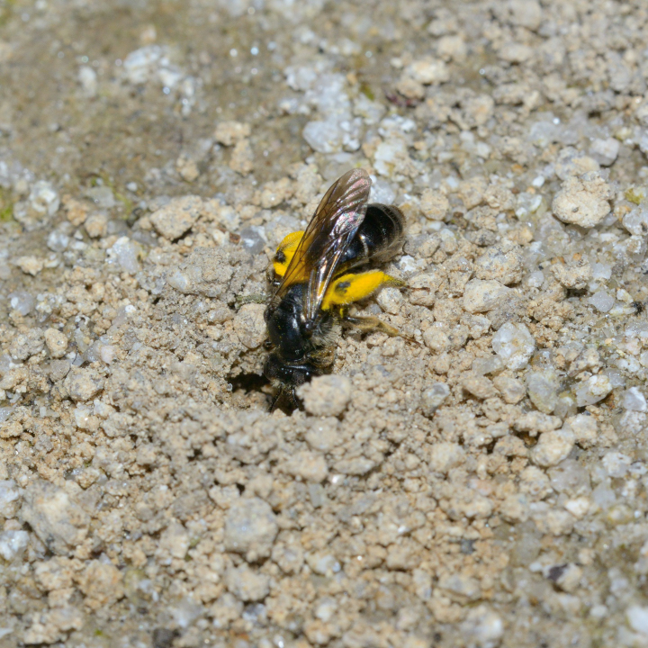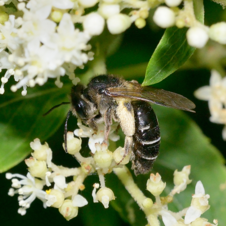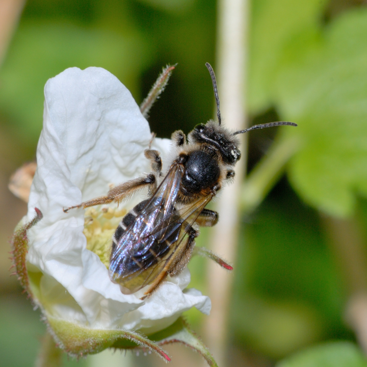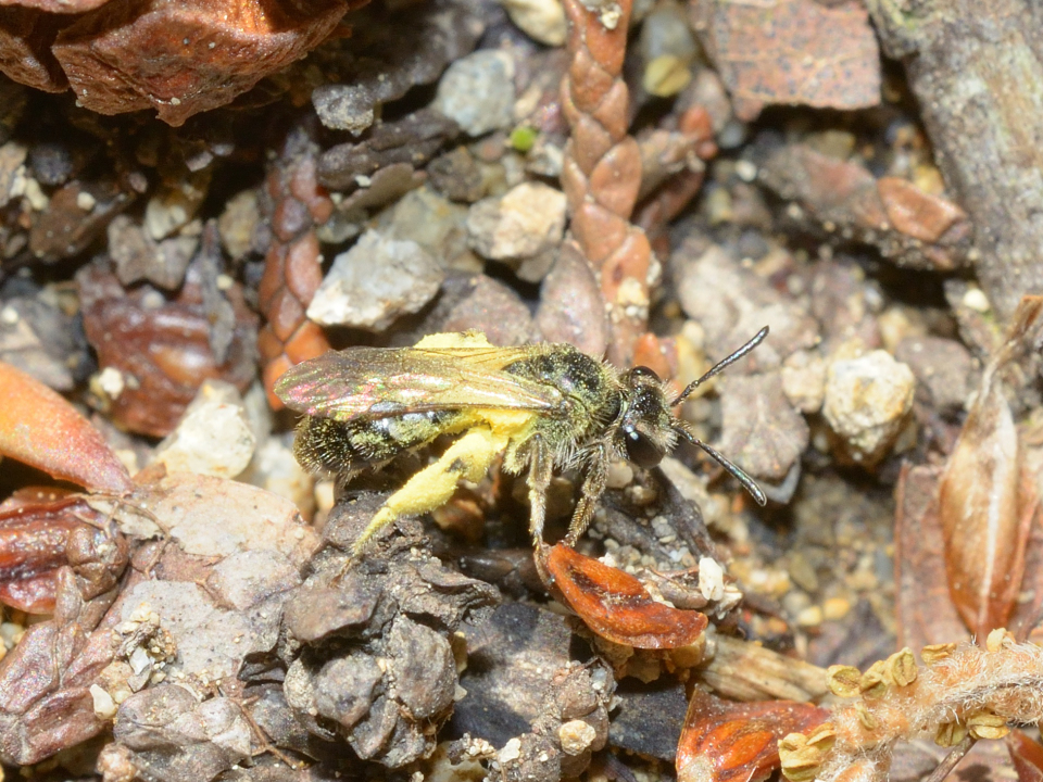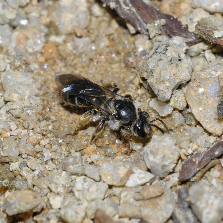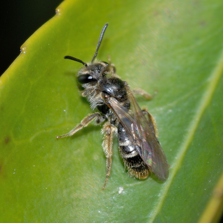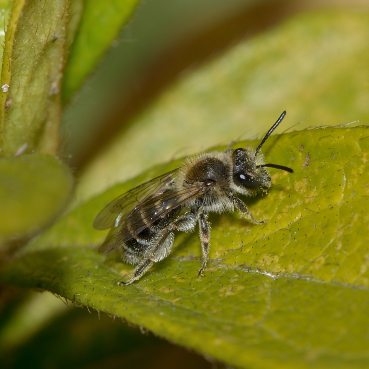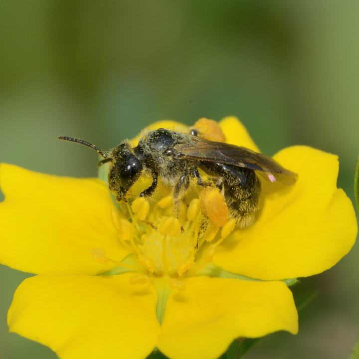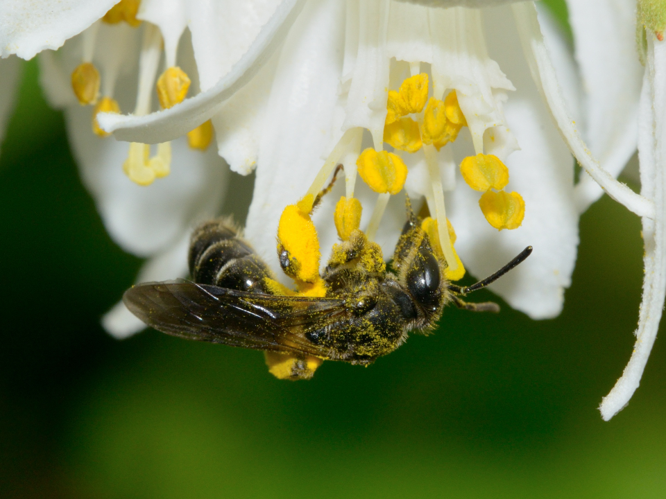 越冬世代は気温のせいもあり、動きに活発さを欠くが、第一世代は翅を半開きにして、遠目にはハキリバチの様に活発に花を渡る。