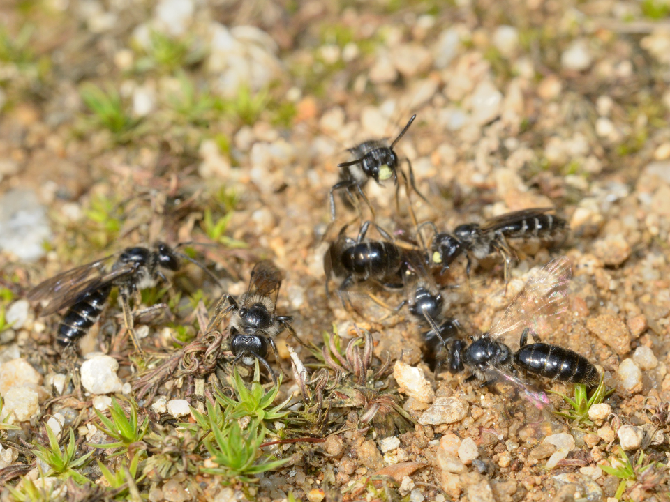 陽当たりのいい地面に営巣し、ときに集団になる。