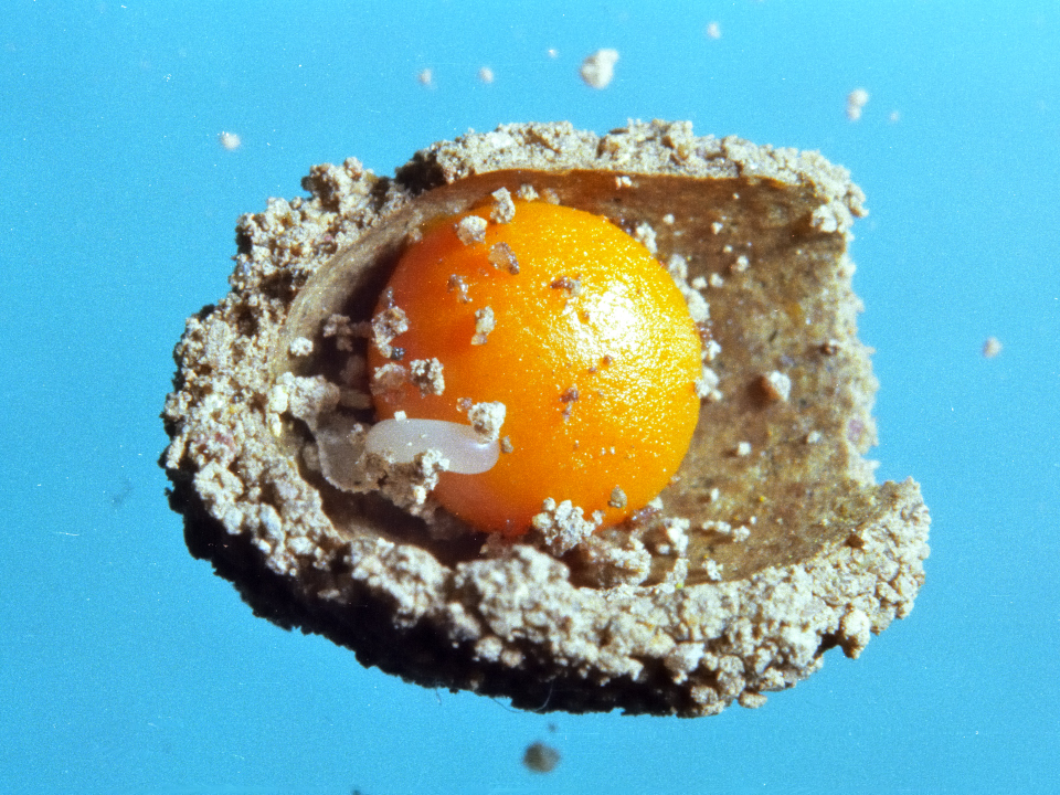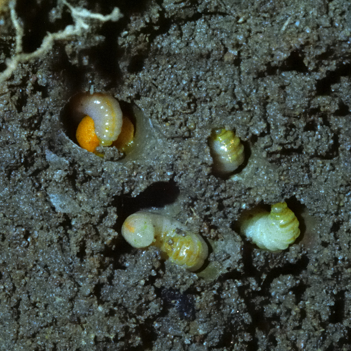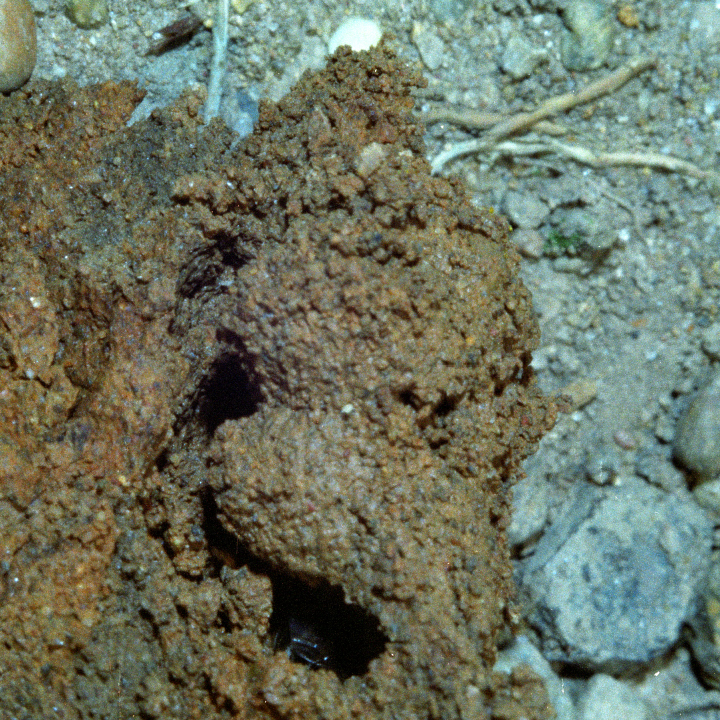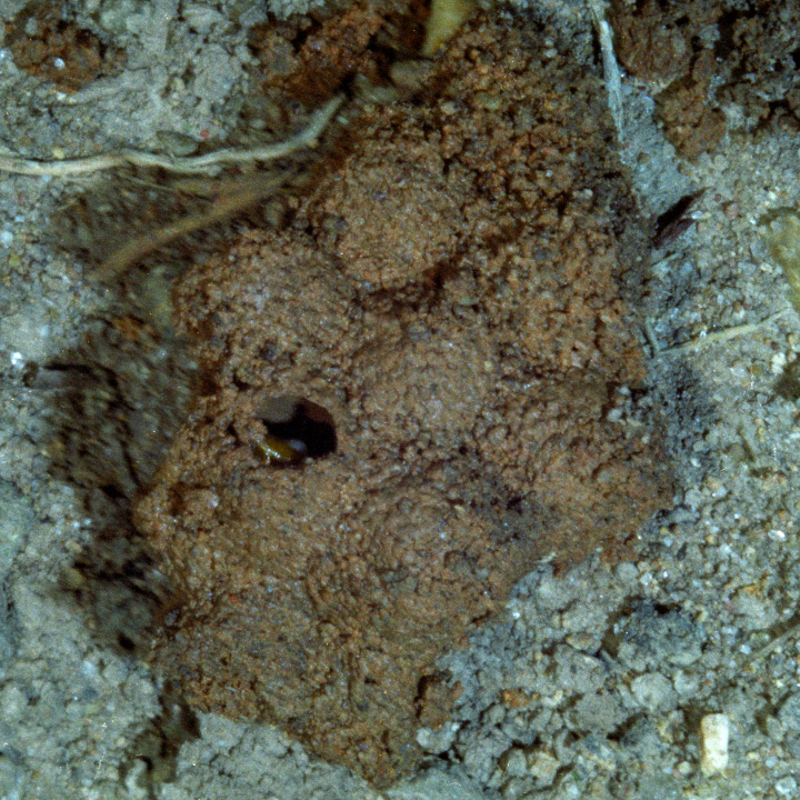 巣は複雑な構造で、主坑から分岐した枝坑の先に育房塊が作られ、まわりは数本の支柱を残して空洞になっている。