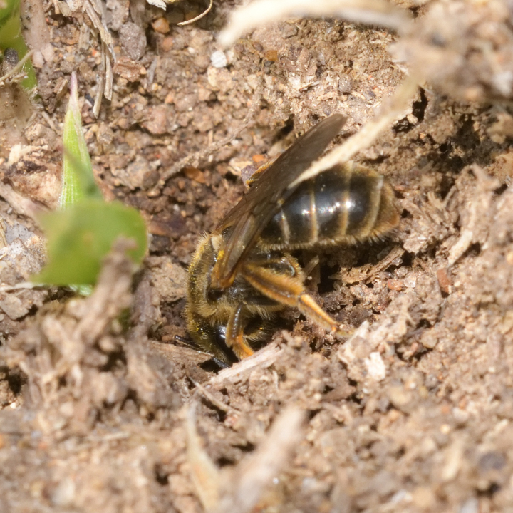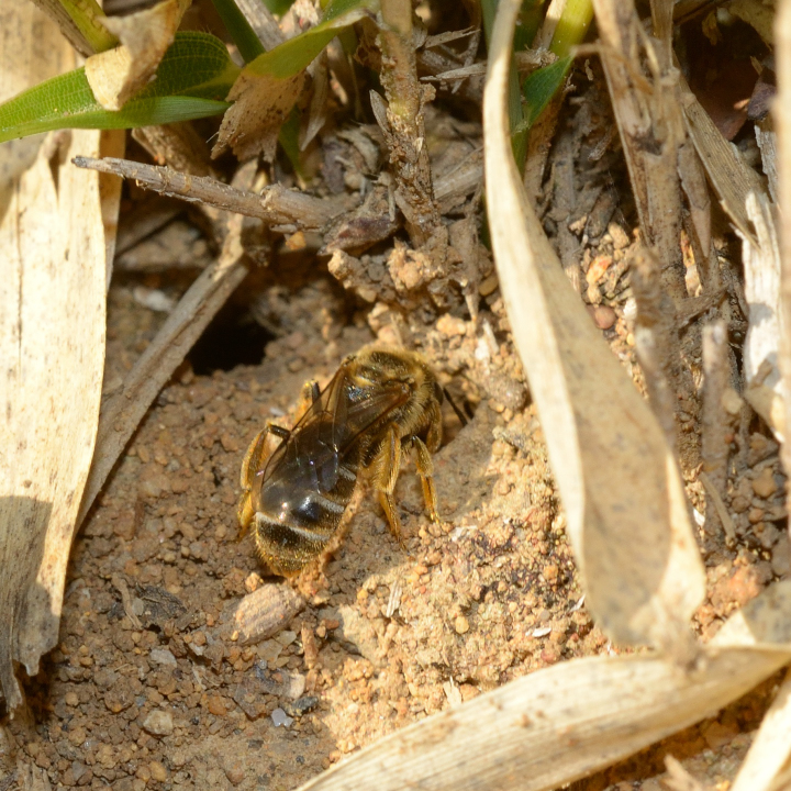 ツワブキを訪花する翌年の創設メスとなる個体。