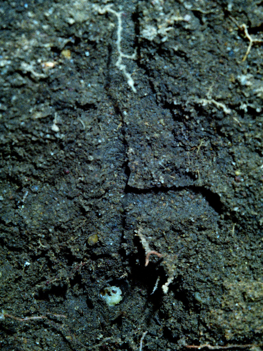 坑道の先に蛹が見える。