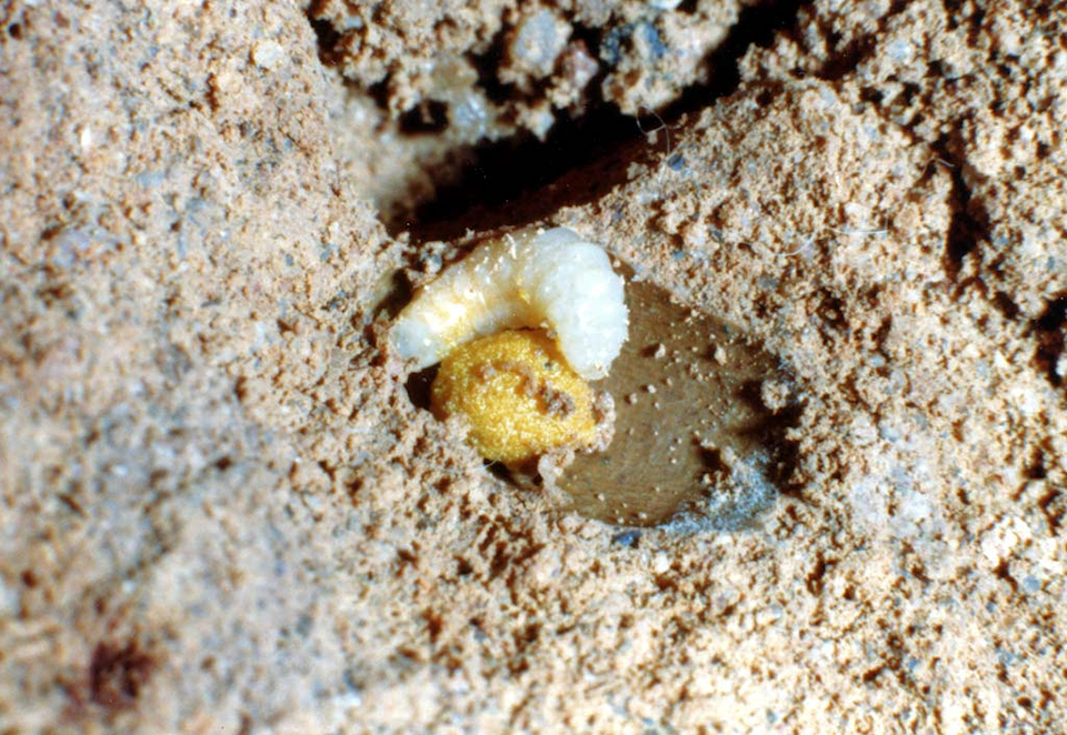 地中に営巣し、花粉蜜の団子を作り産卵する。