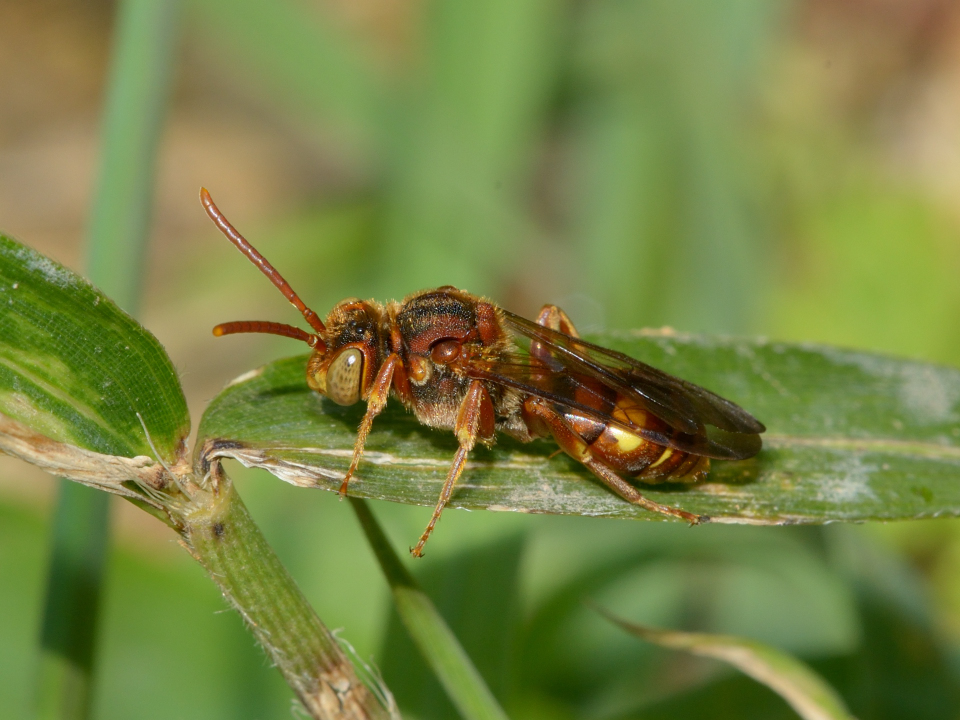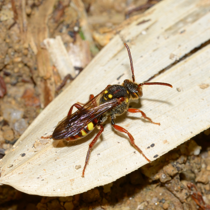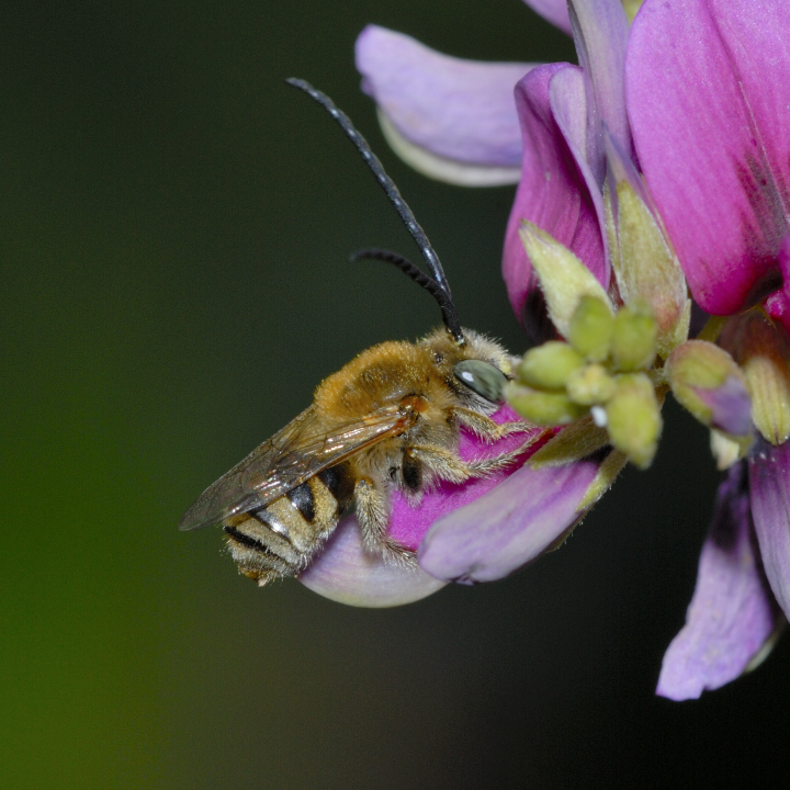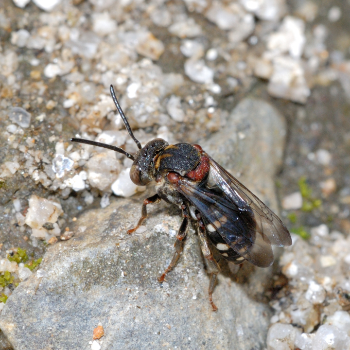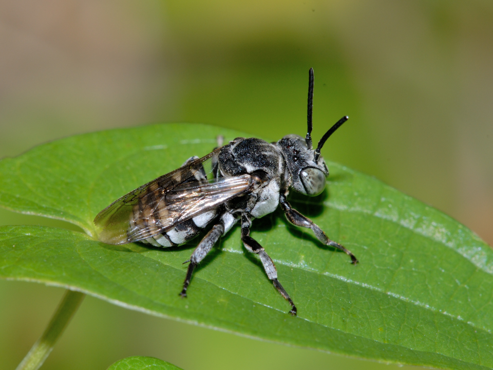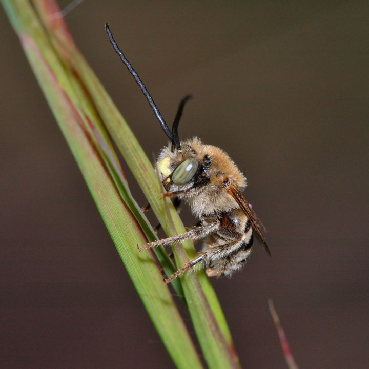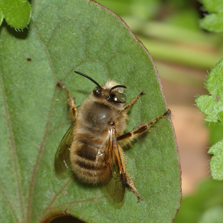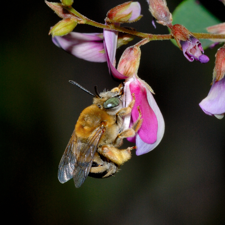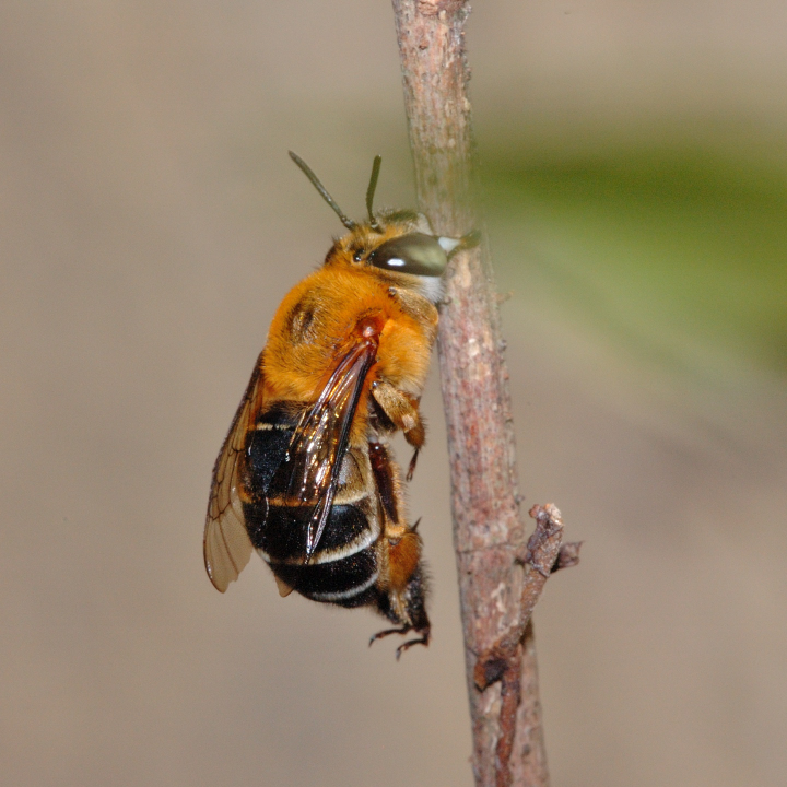 キムネクマバチに比べて複眼の大きさの性差は小さい。