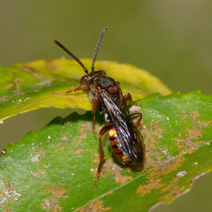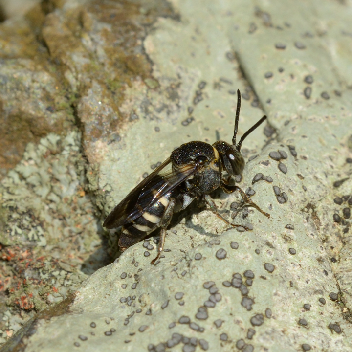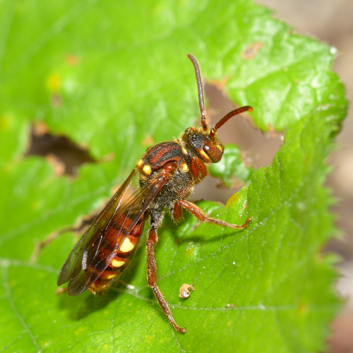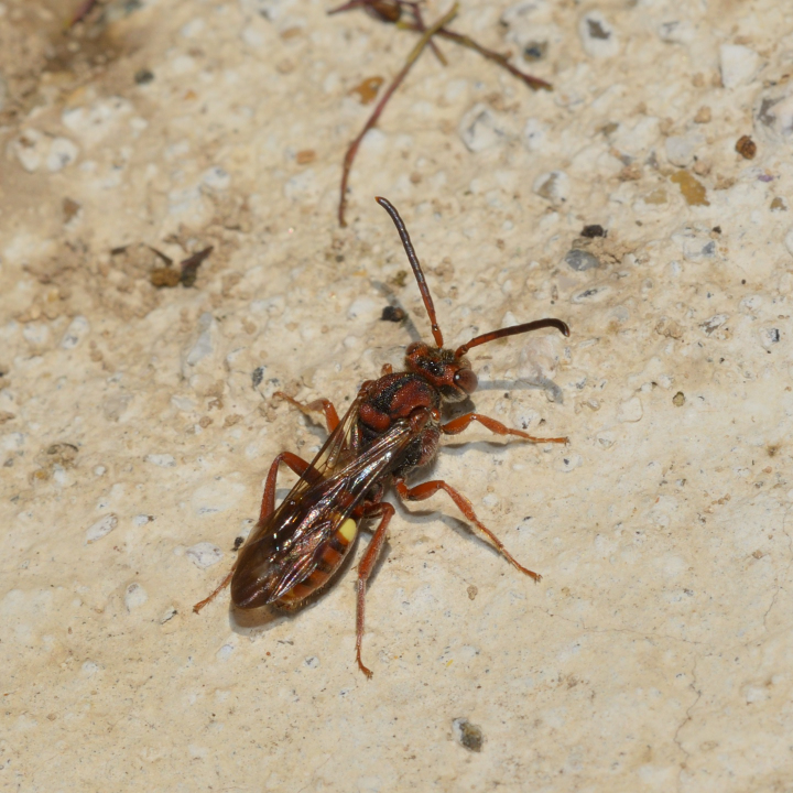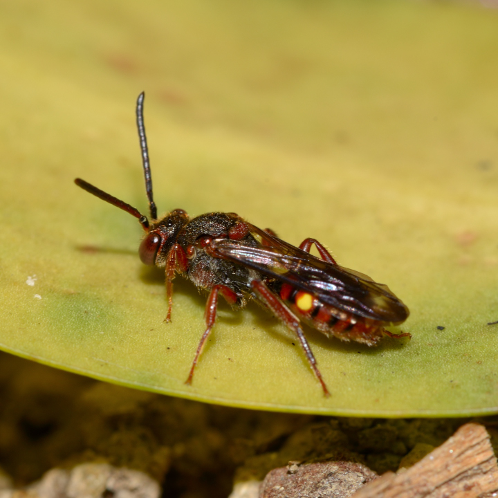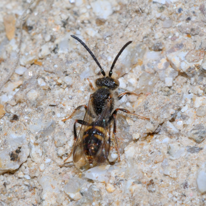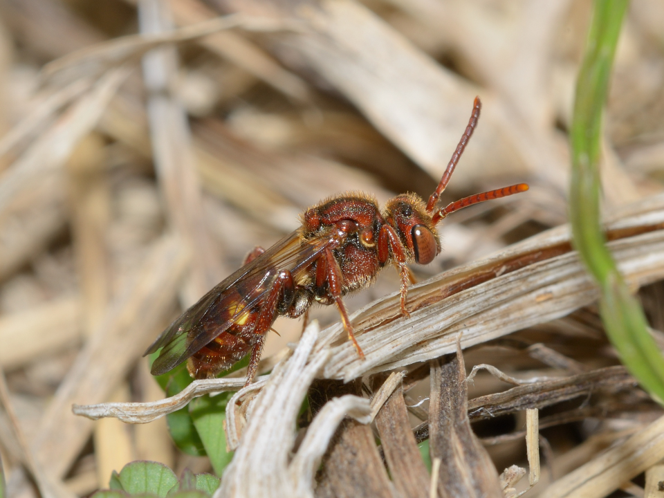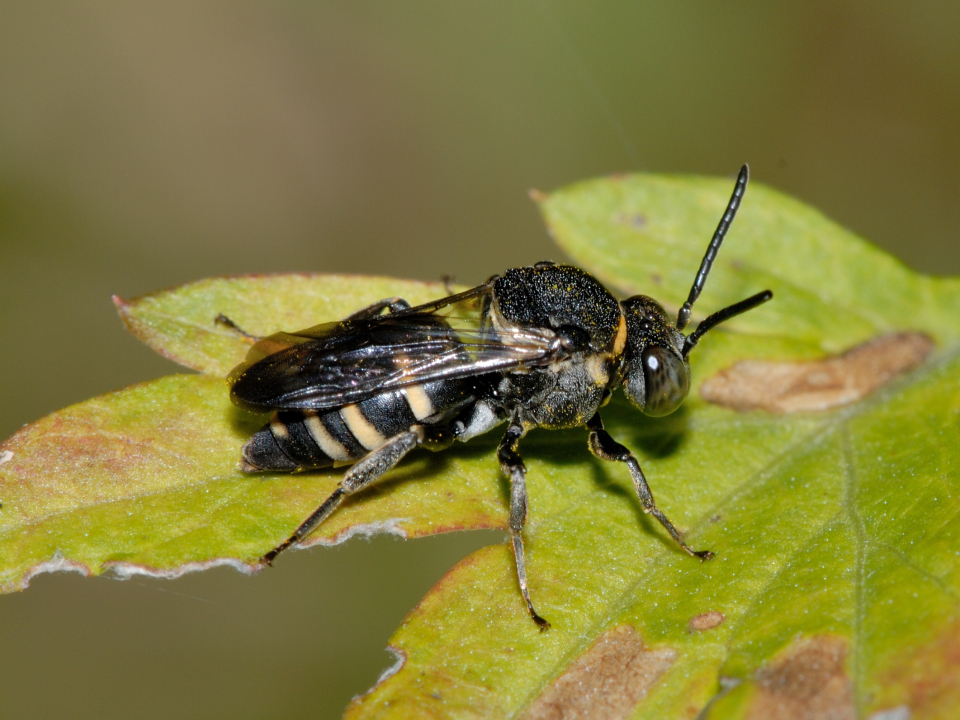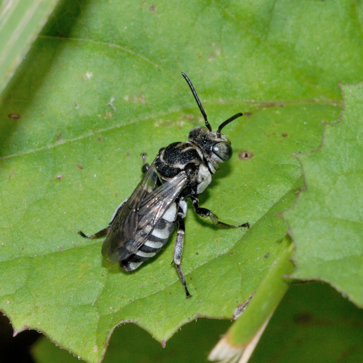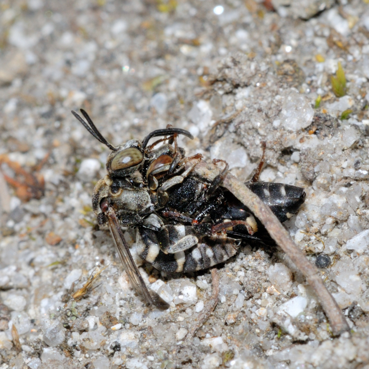 キムネクマバチに比べて複眼の大きさの性差は小さい。