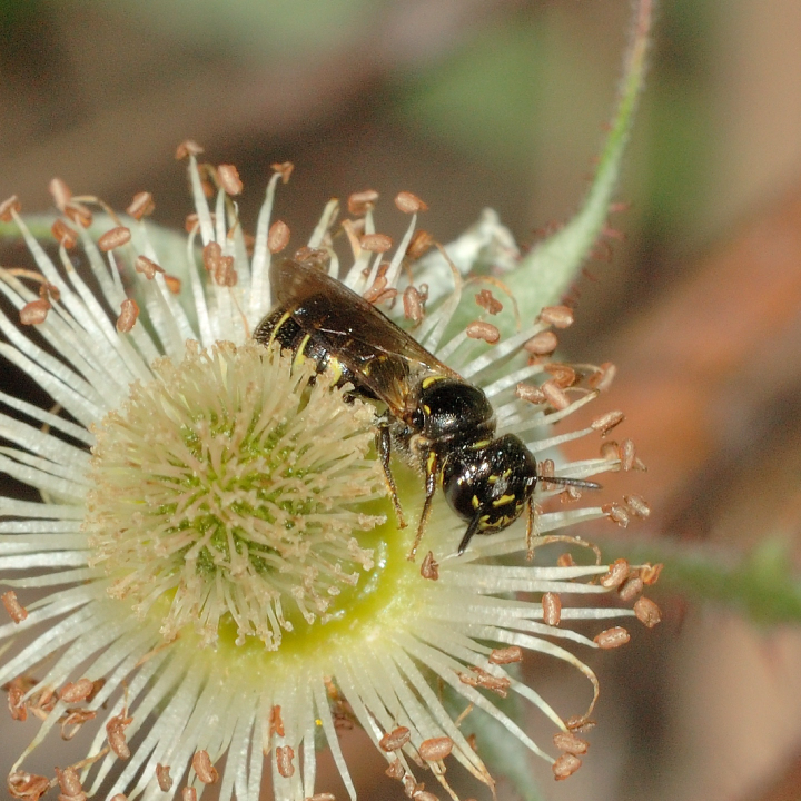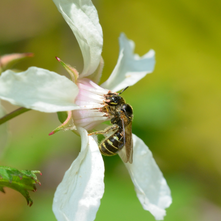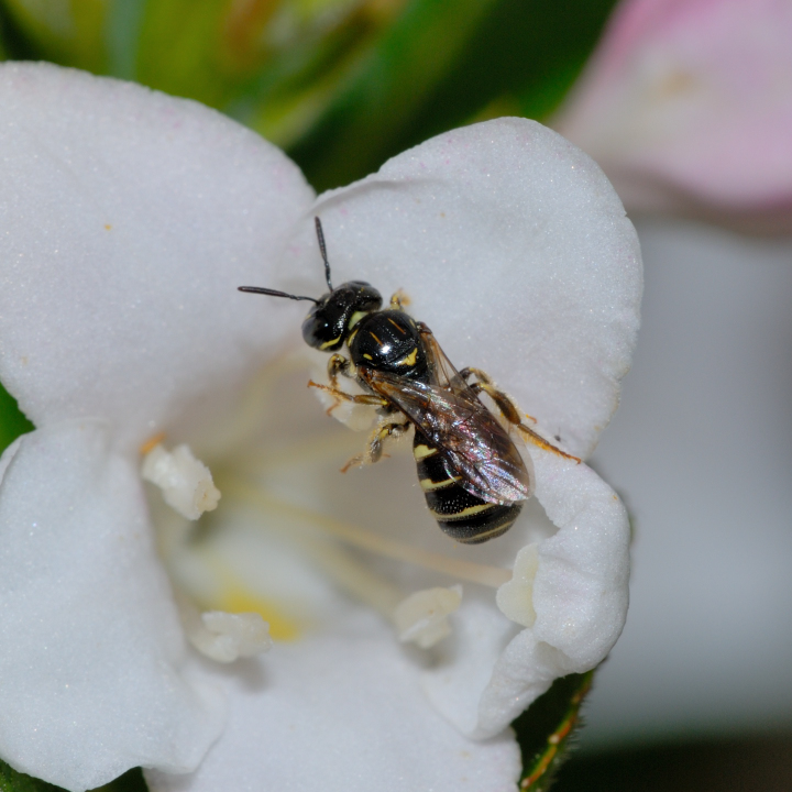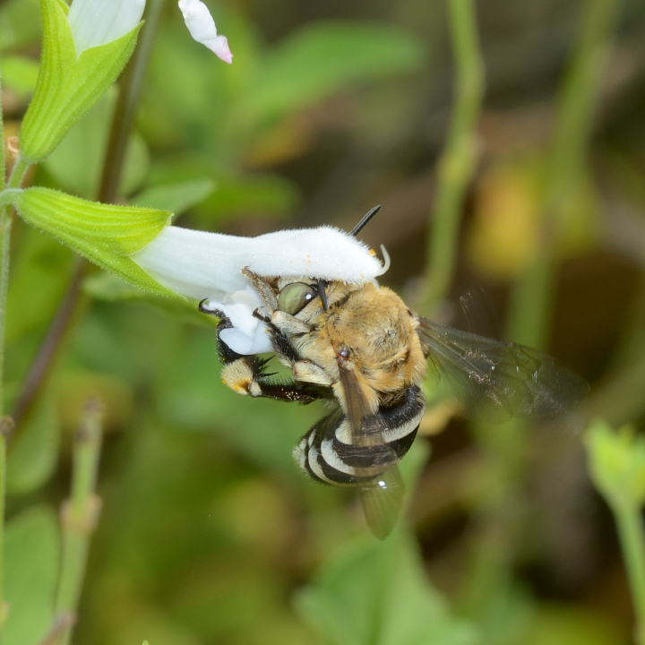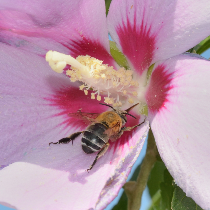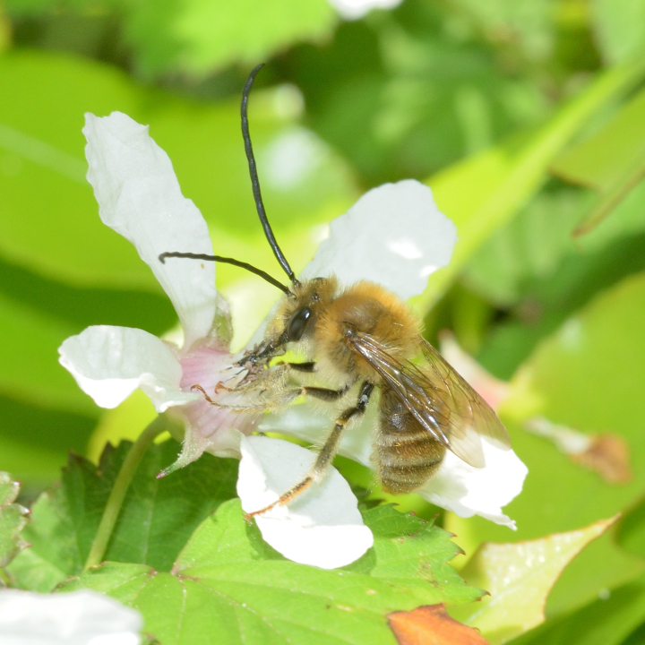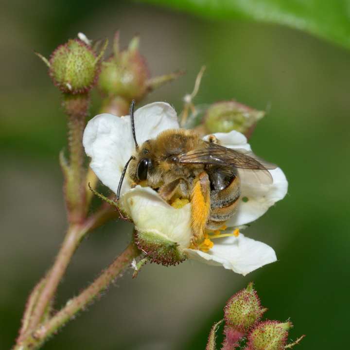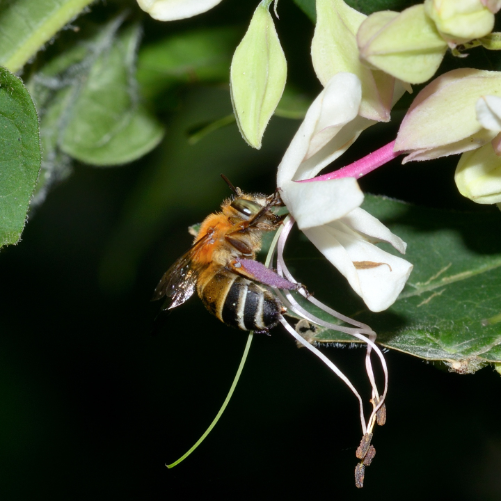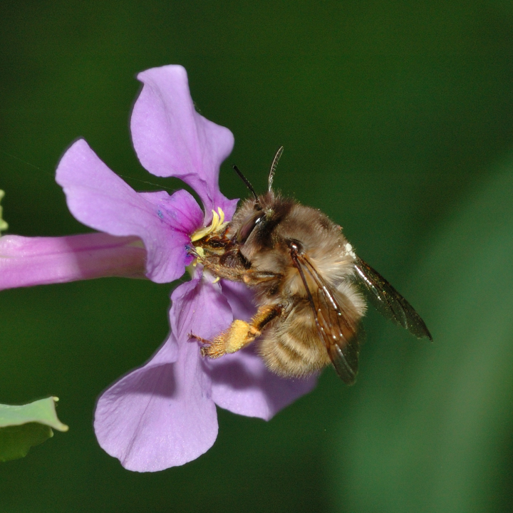マルバシャリンバイを訪花し、花粉と蜜を集めるメス。