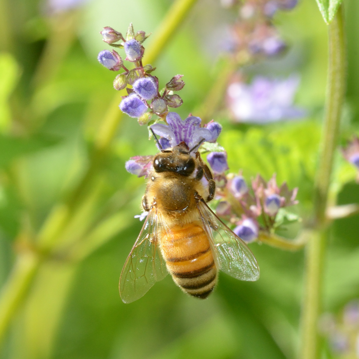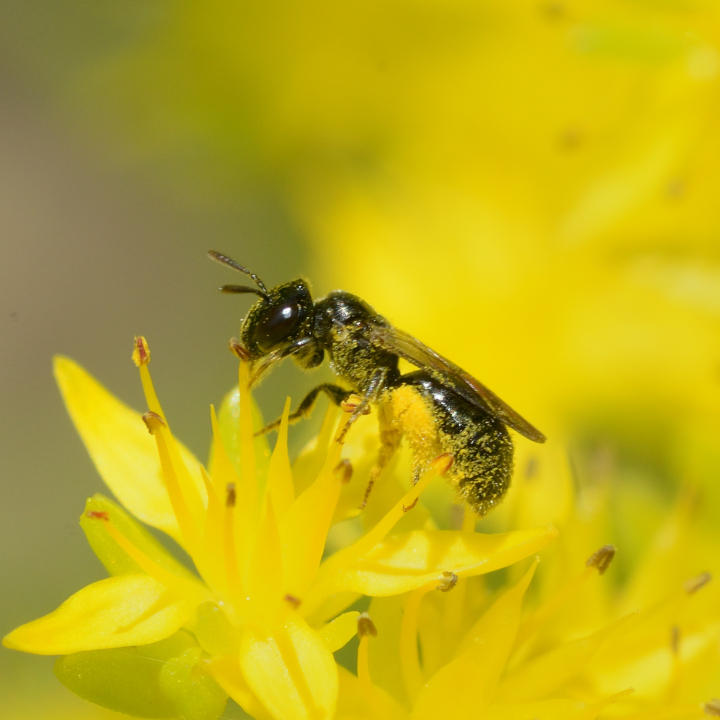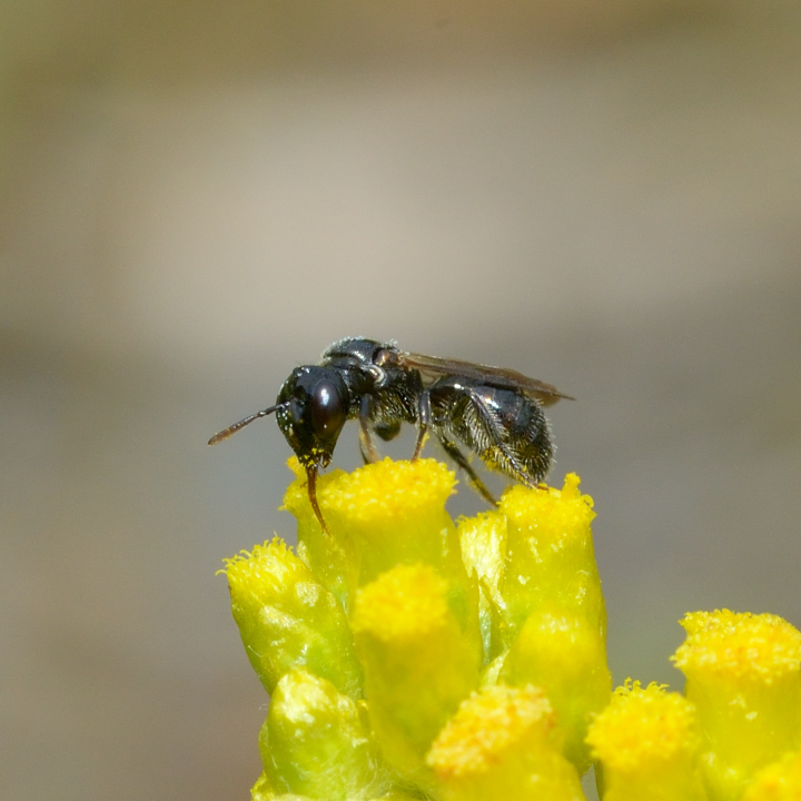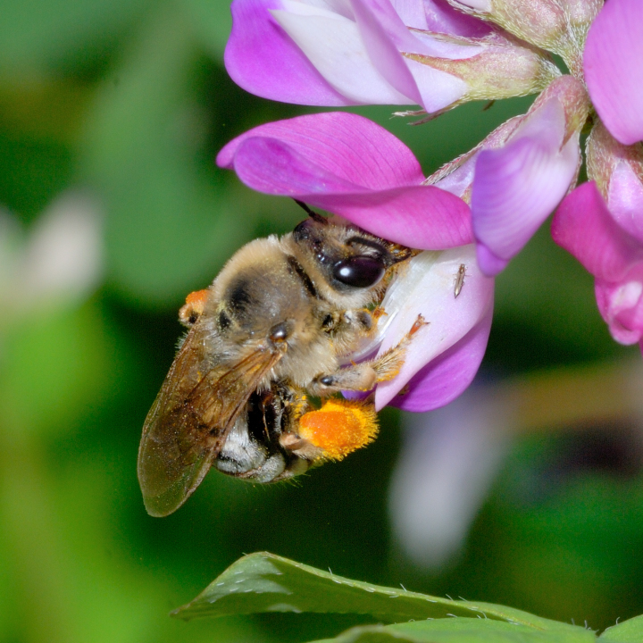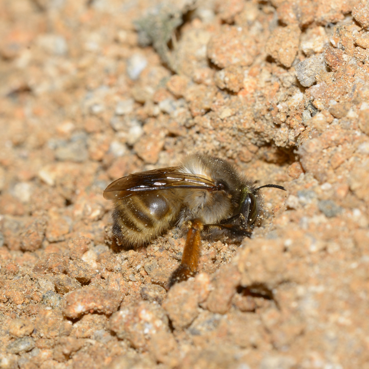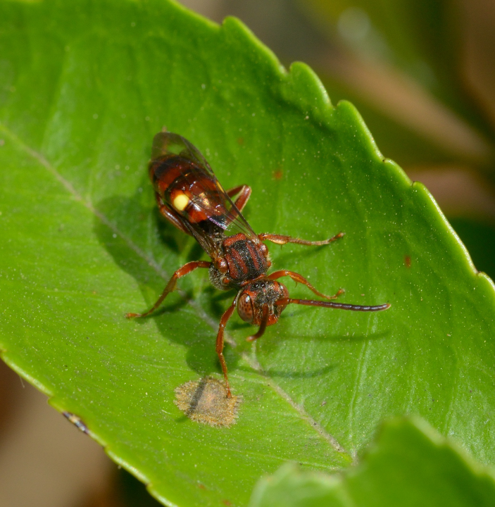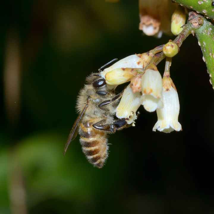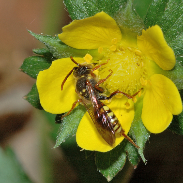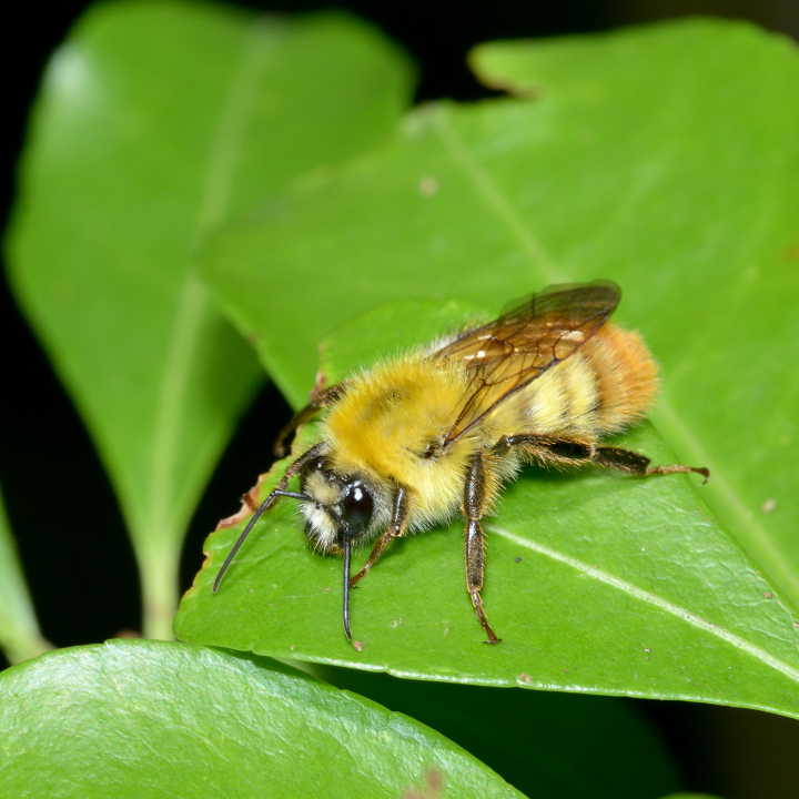 マルバシャリンバイを訪花し、花粉と蜜を集めるメス。