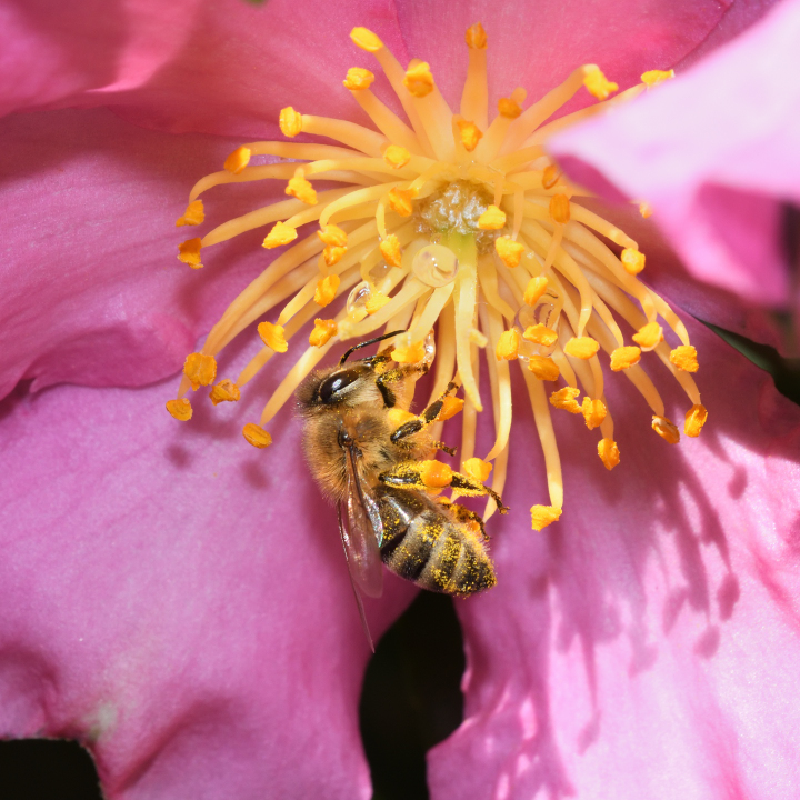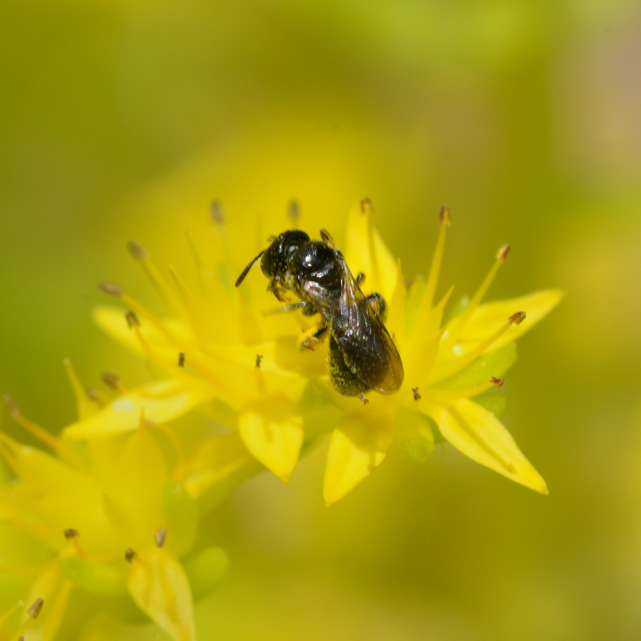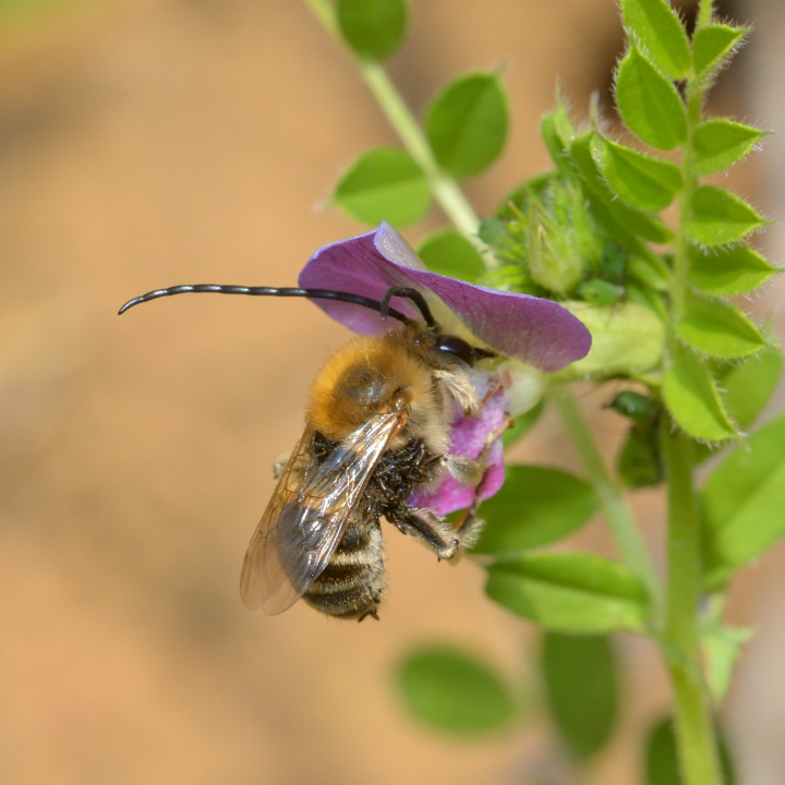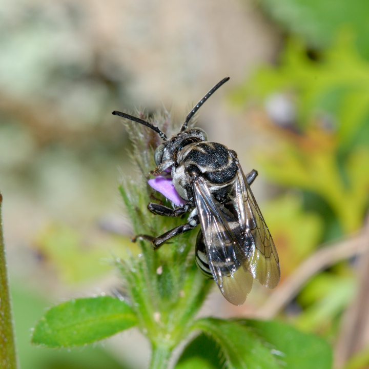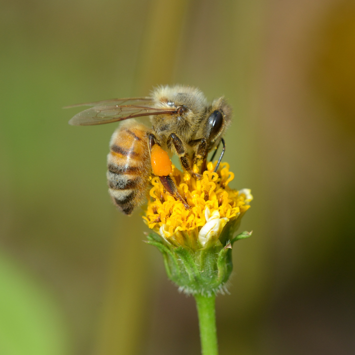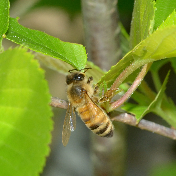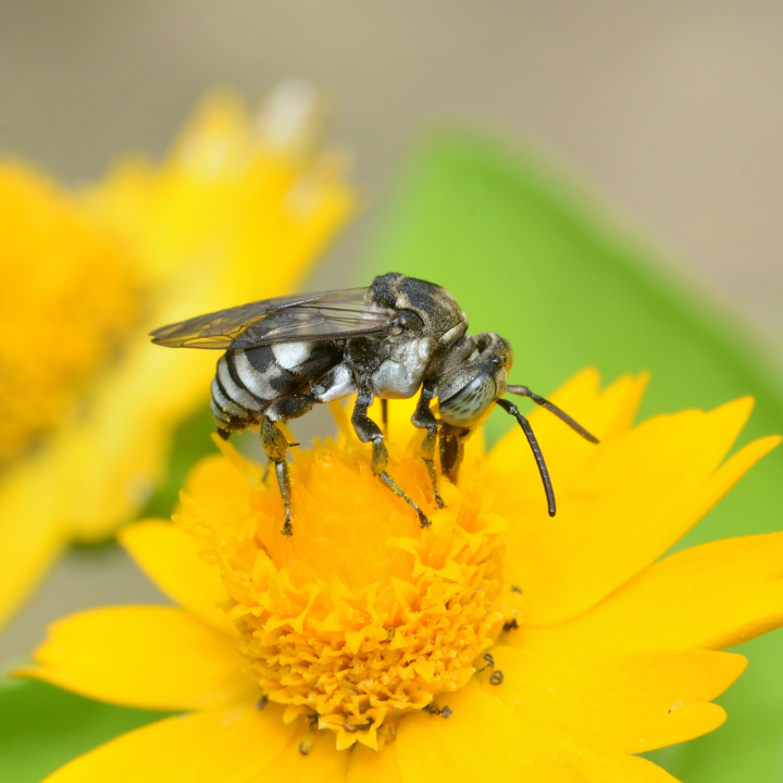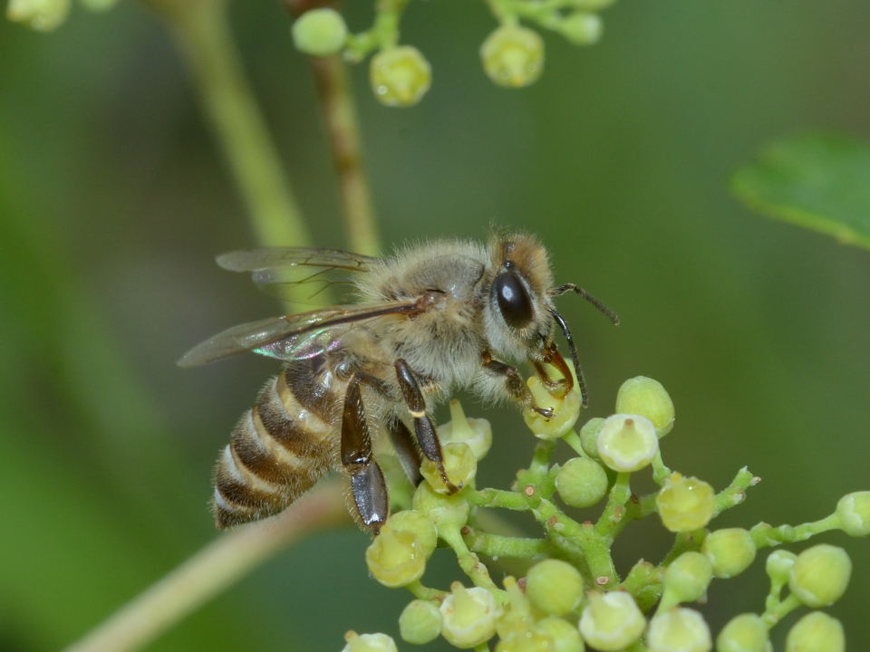 マルバシャリンバイを訪花し、花粉と蜜を集めるメス。