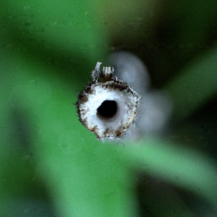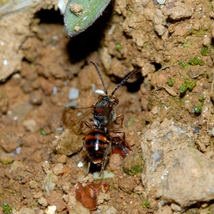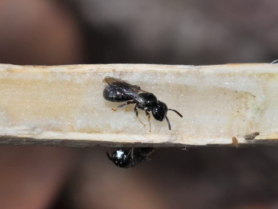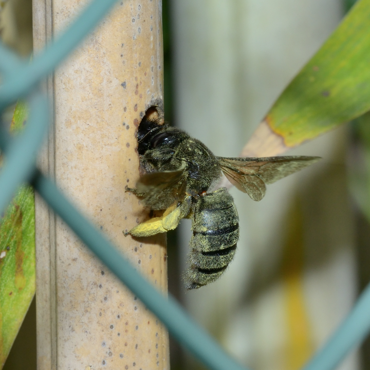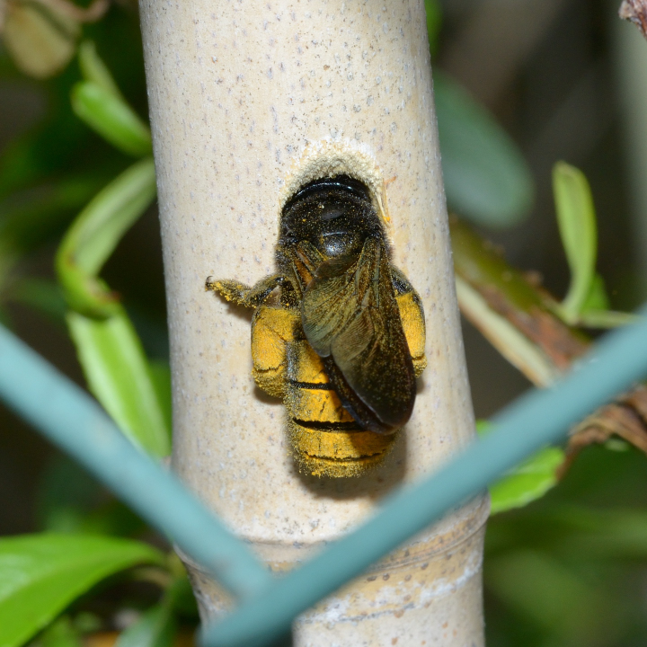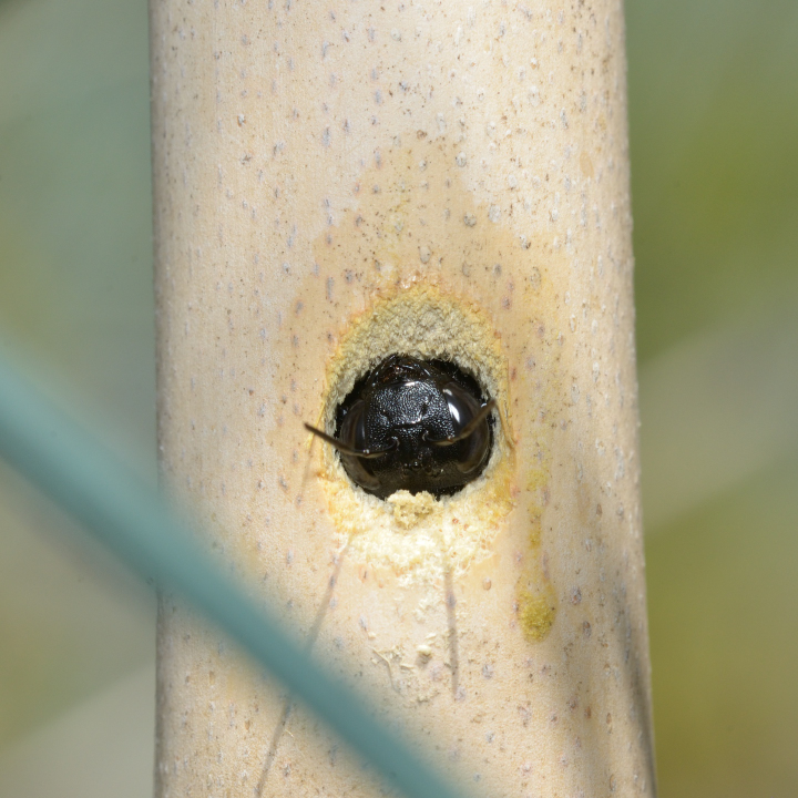 竹の内径は12.5mmで、巣口は巾7.5mm、縦6.5mm。巣内にメスが2頭いたが、この営巣地で待機中の個体がいるのは不自然でもあるので、多雌巣なのかも知れない。