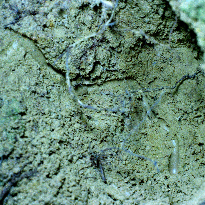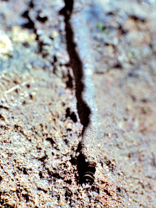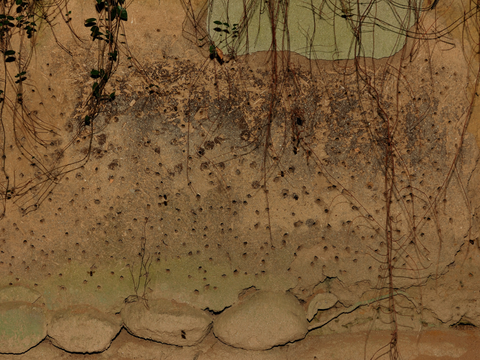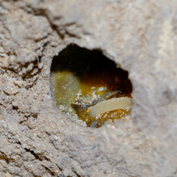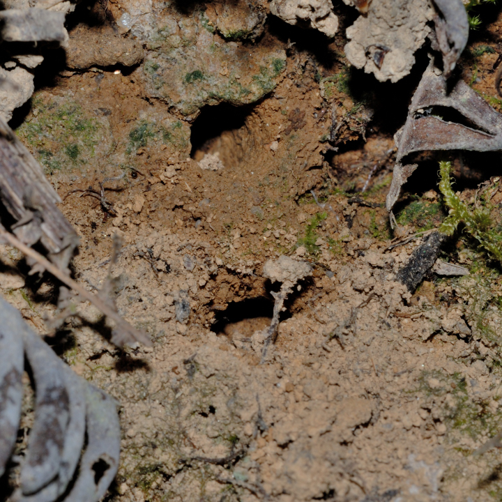 巣口の周りの唾液で濡らしてかじった跡が、シミになっている。