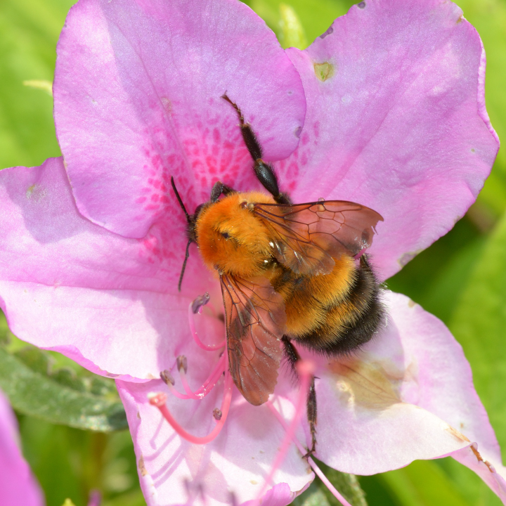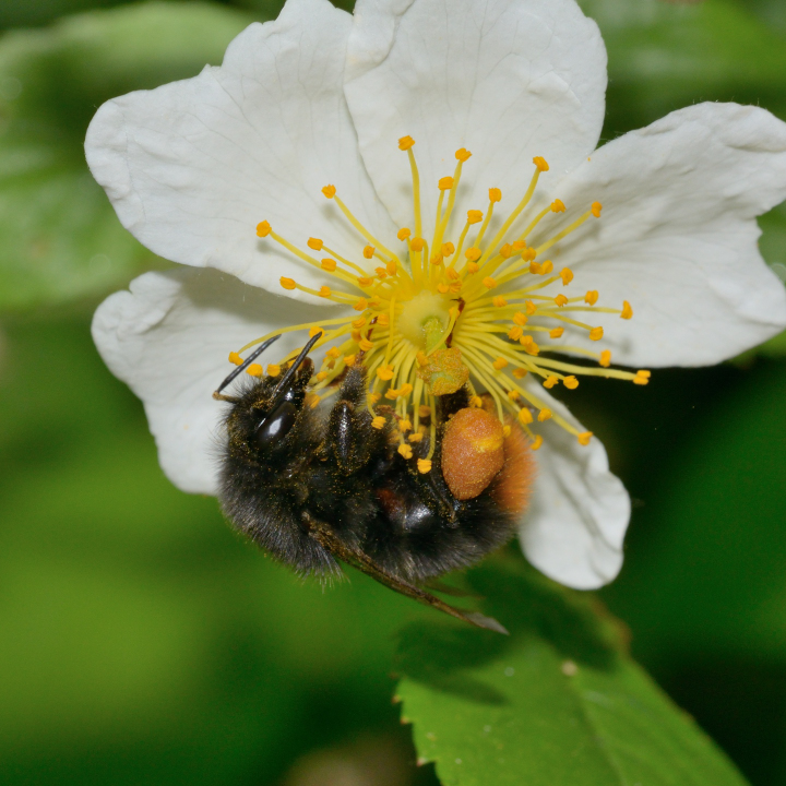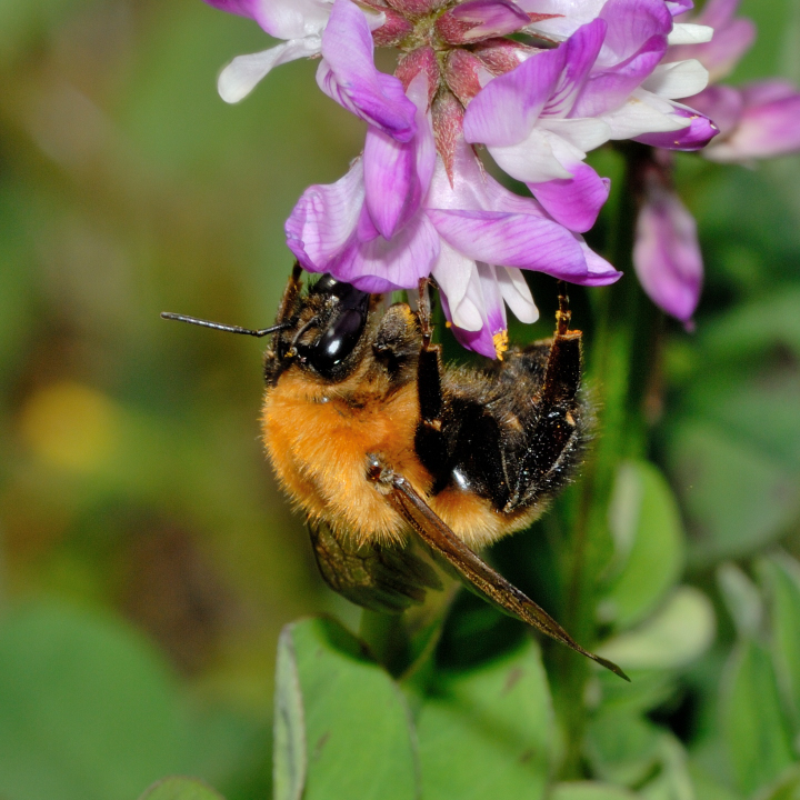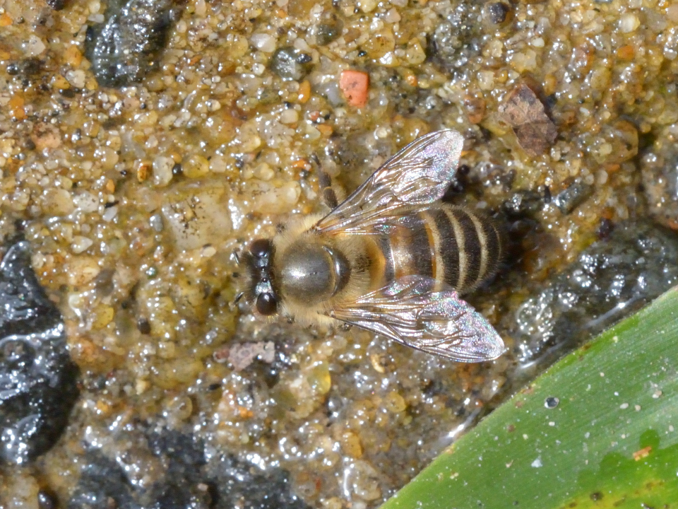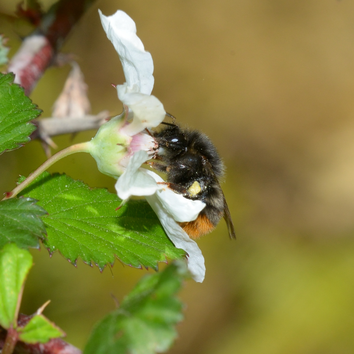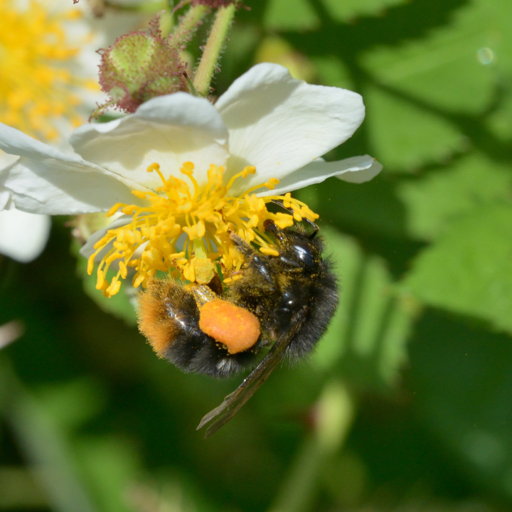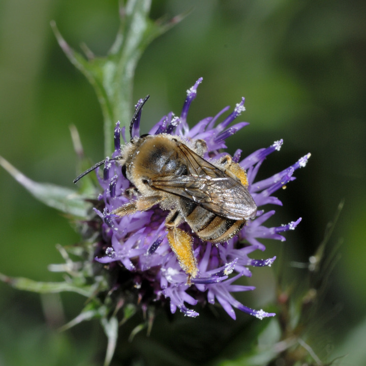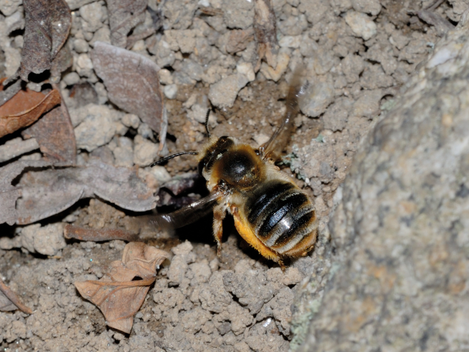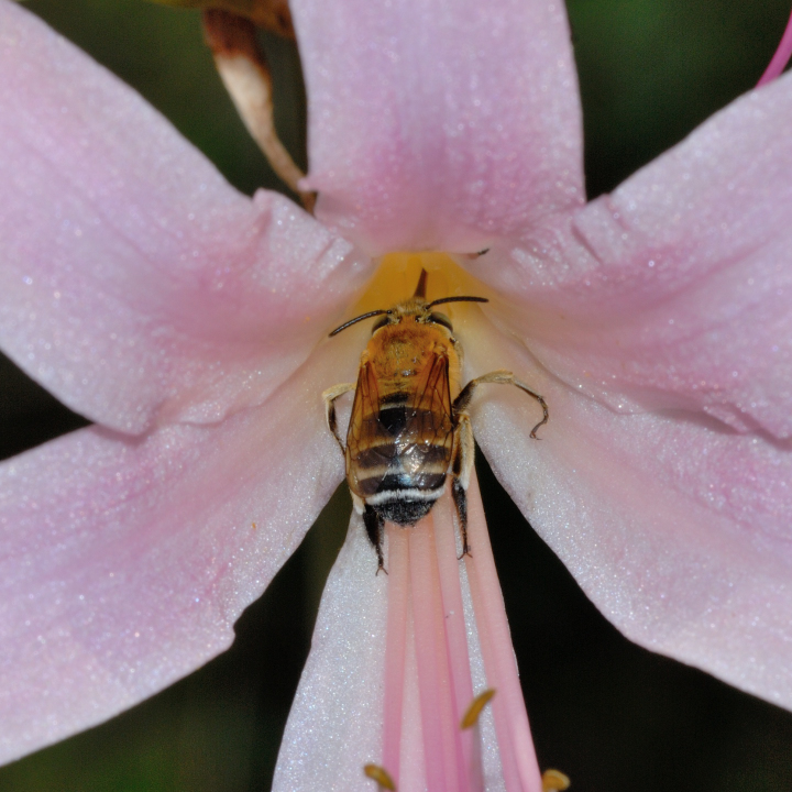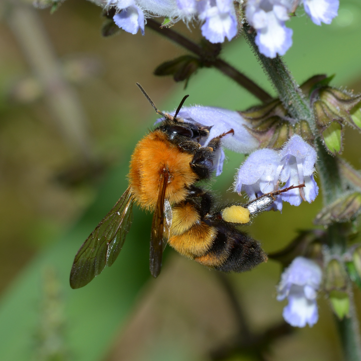 後肢にだけ花粉を付けている個体もいるので、常態的に腹部まで利用する訳でもなさそうだ。