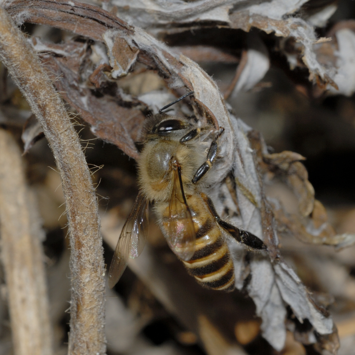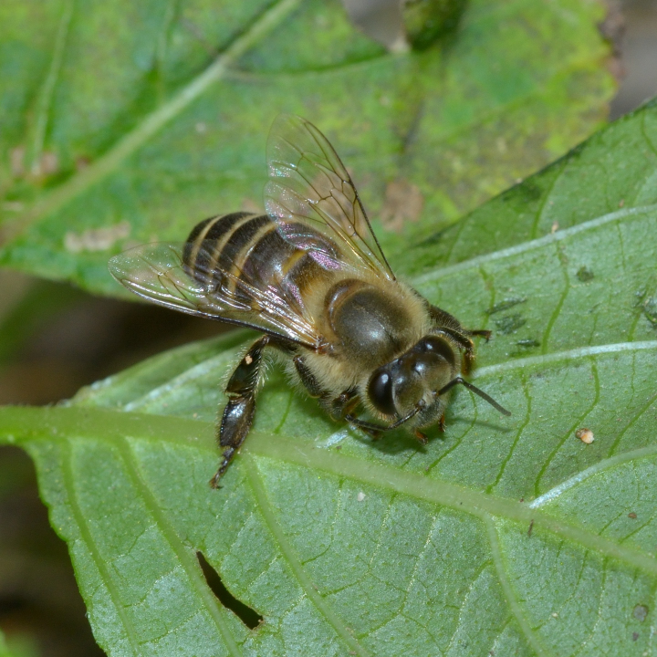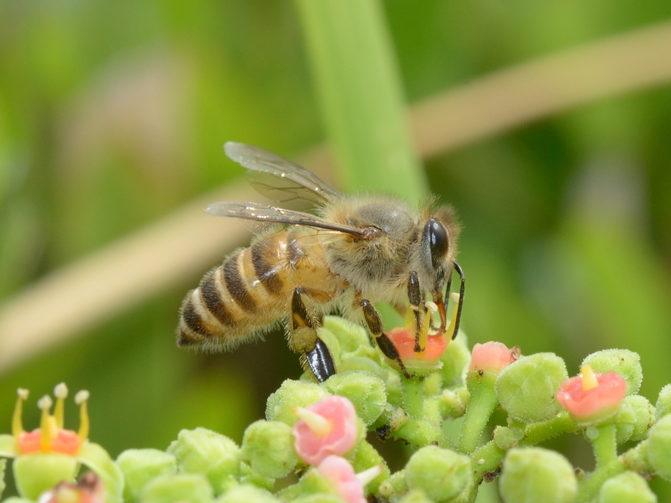 後肢に付いた花粉の量が微妙だが、まだ貯食を始めていないのかも知れない。