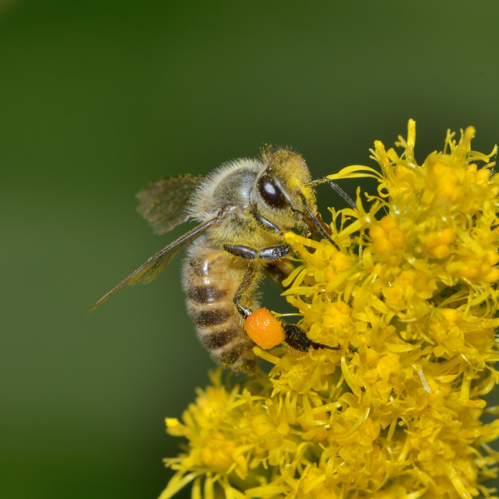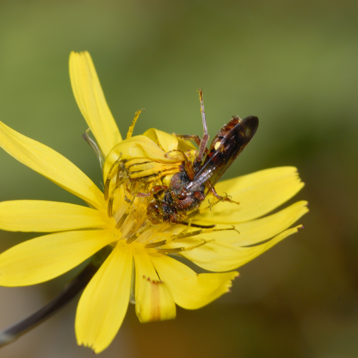 腹部にまで花粉を付けているが、外役に出る時には無くなっている。