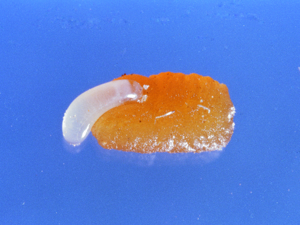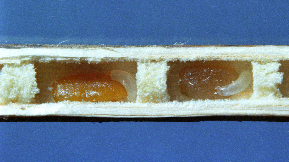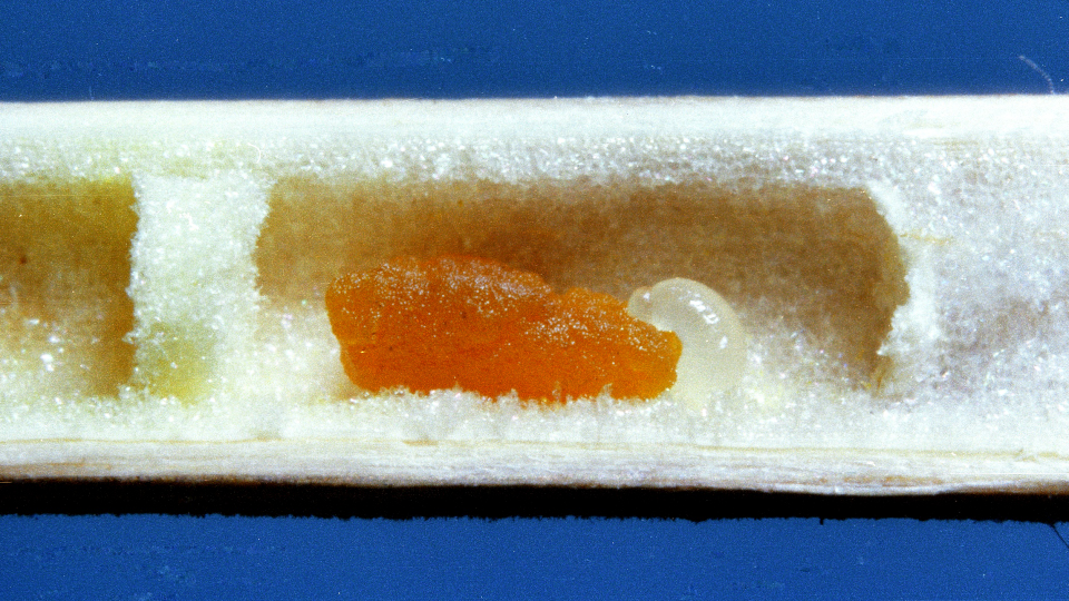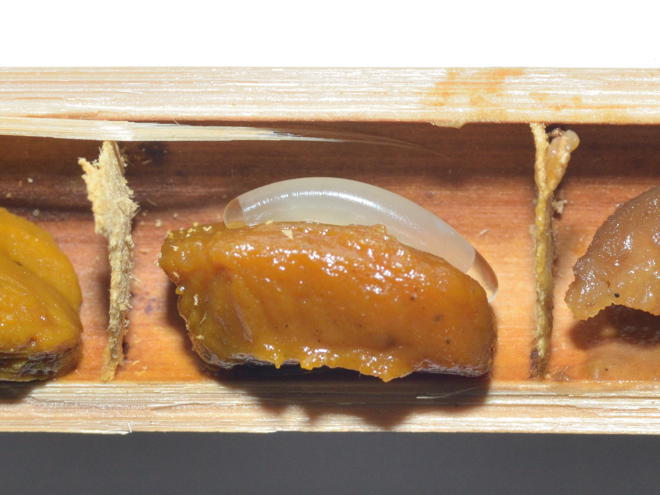 3つ目の育房の卵は竹を割った時に破損した様だ。